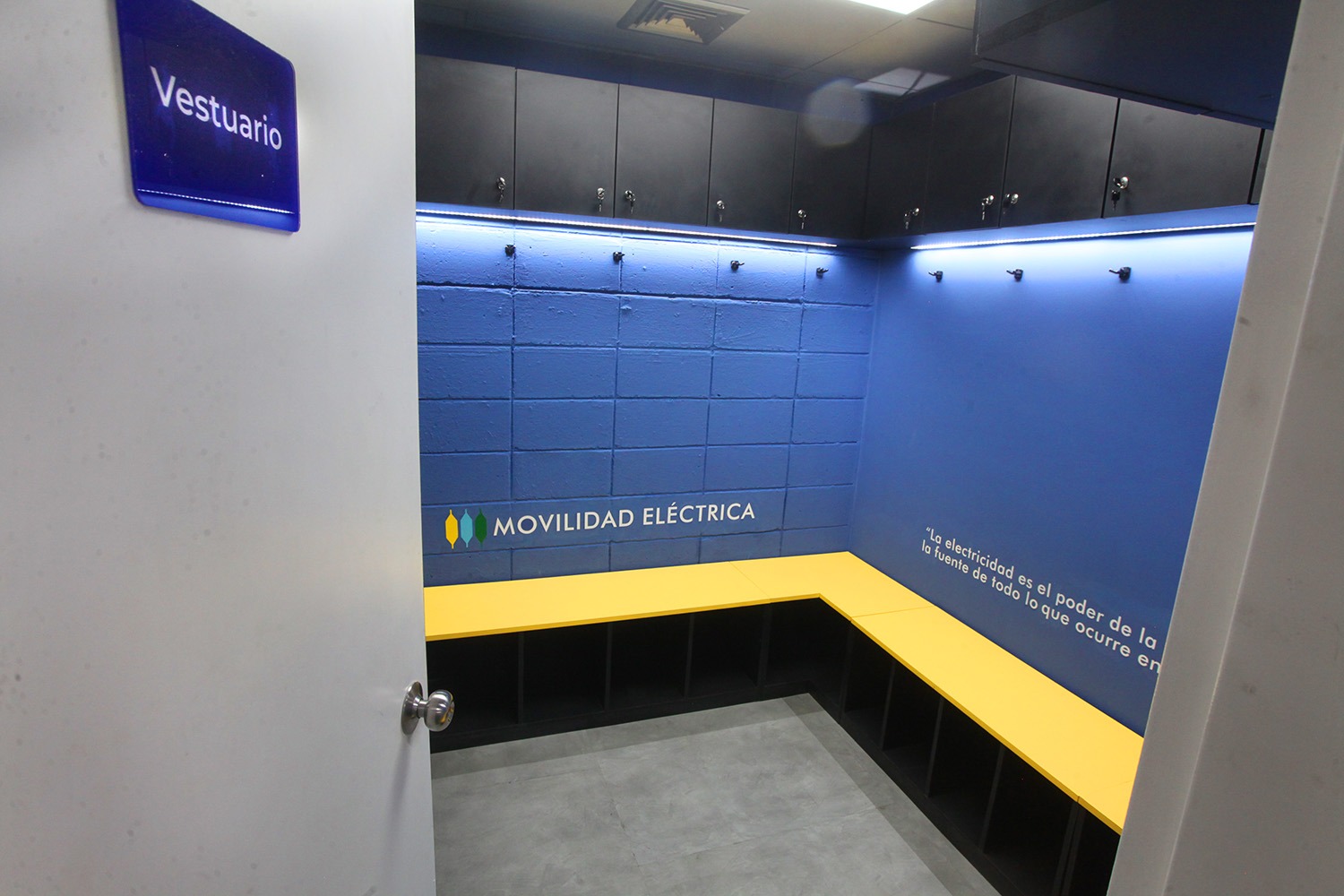 También dispone de una mesa de trabajo para ensamblar y conectar los componentes eléctricos, un cuarto de pintura, un almacén para guardar los instrumentos y equipos, e incluso vestidores con casilleros para que los estudiantes utilicen uniformes de trabajo y competición según cada proceso.