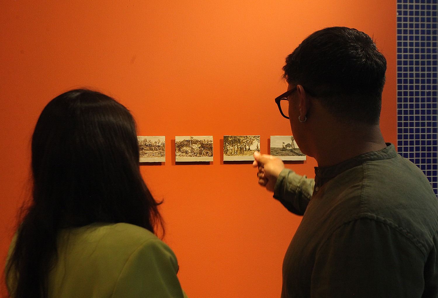 Junto a ellas, cerca de 50 piezas de otros creadores cuelgan de diversos módulos, repartidos por toda la sala, para dialogar entre ellas mismas y con los espectadores, quienes al verlas se trasladan a otros tiempos y lugares a través de trazos, pinceladas y composiciones.