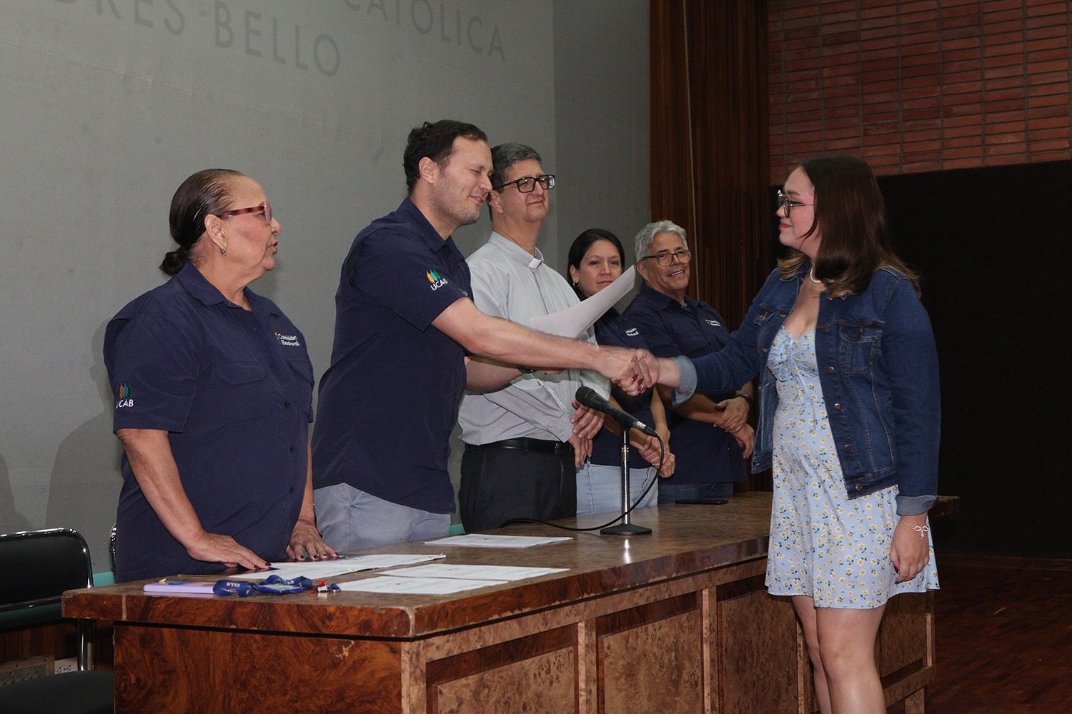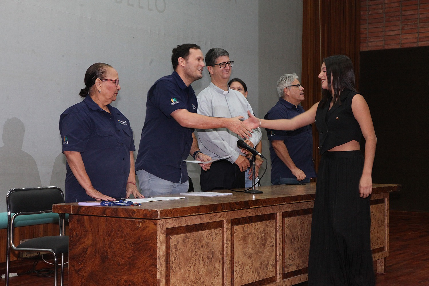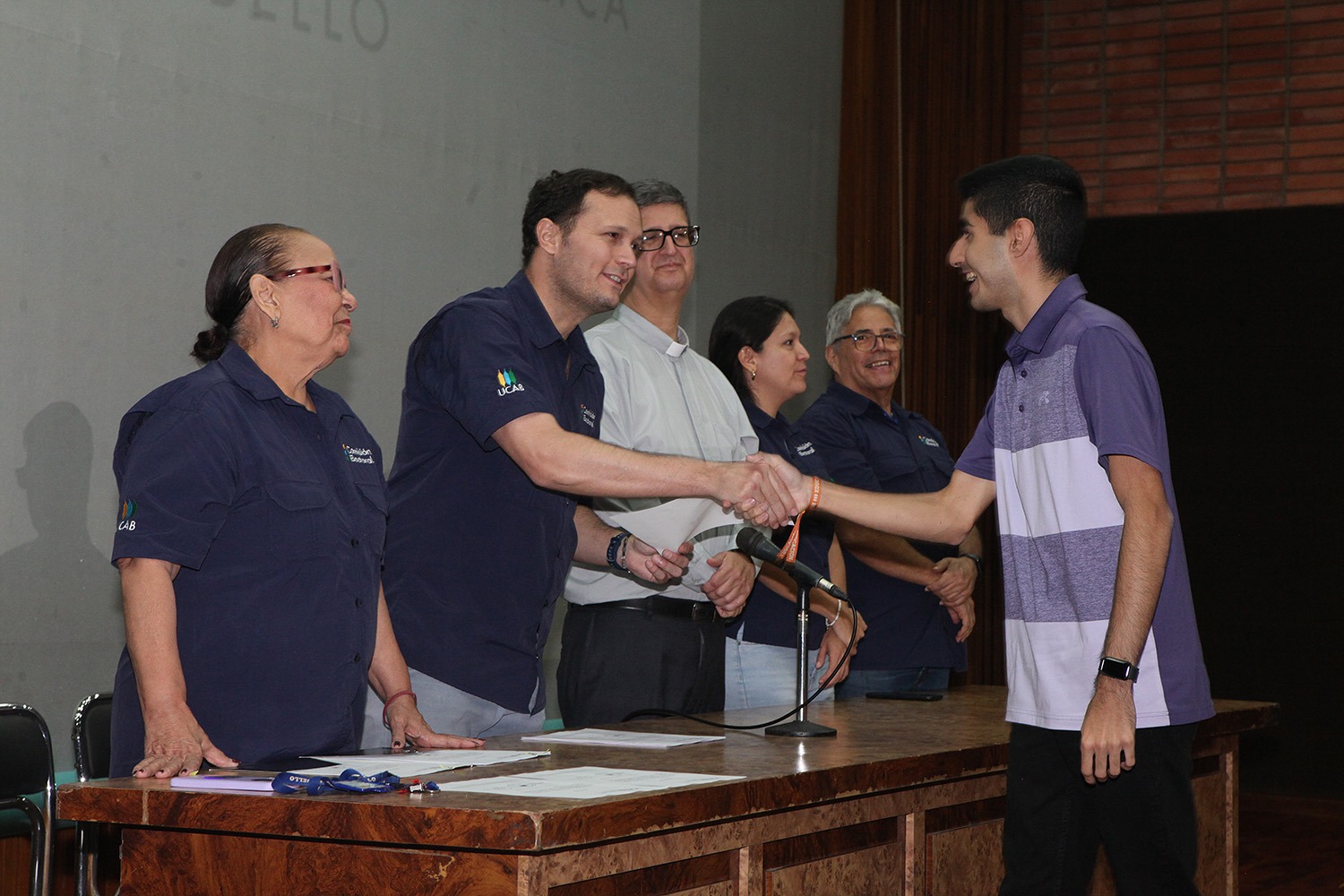 Presidieron el acto -celebrado el pasado 20 de junio en el auditorio Hermano Lanz- el rector Arturo Peraza, S.J.; el vicerrector de Identidad, Desarrollo Estudiantil y Extensión Social, Néstor Luis Luengo; y Rafael Mendoza, director general de Desarrollo Estudiantil.