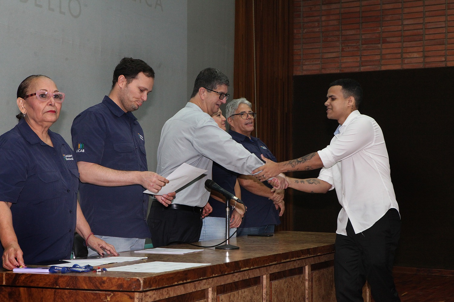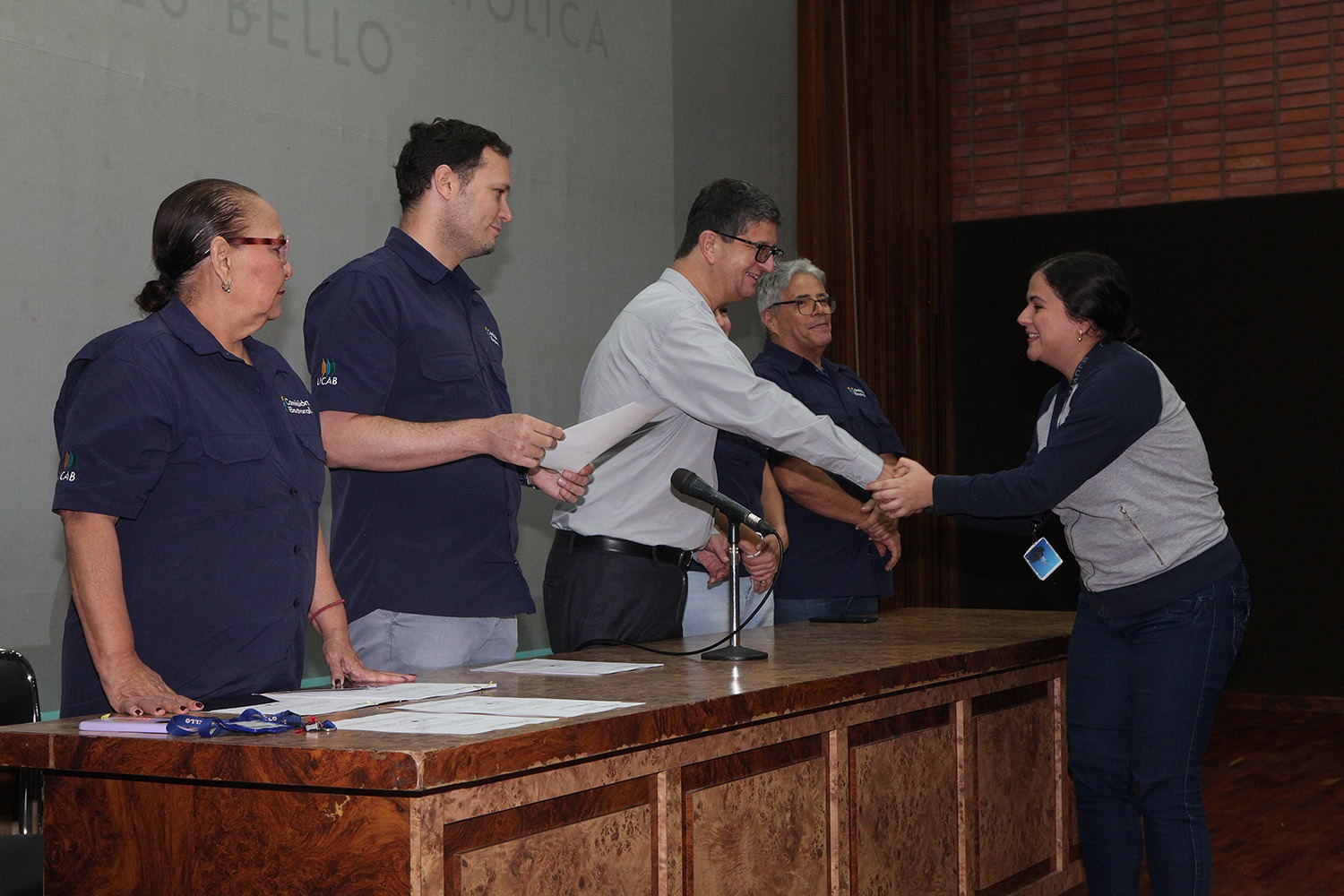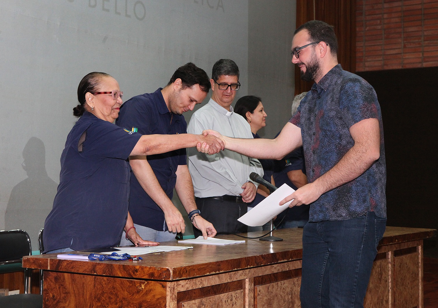 Presidieron el acto -celebrado el pasado 20 de junio en el auditorio Hermano Lanz- el rector Arturo Peraza, S.J.; el vicerrector de Identidad, Desarrollo Estudiantil y Extensión Social, Néstor Luis Luengo; y Rafael Mendoza, director general de Desarrollo Estudiantil.