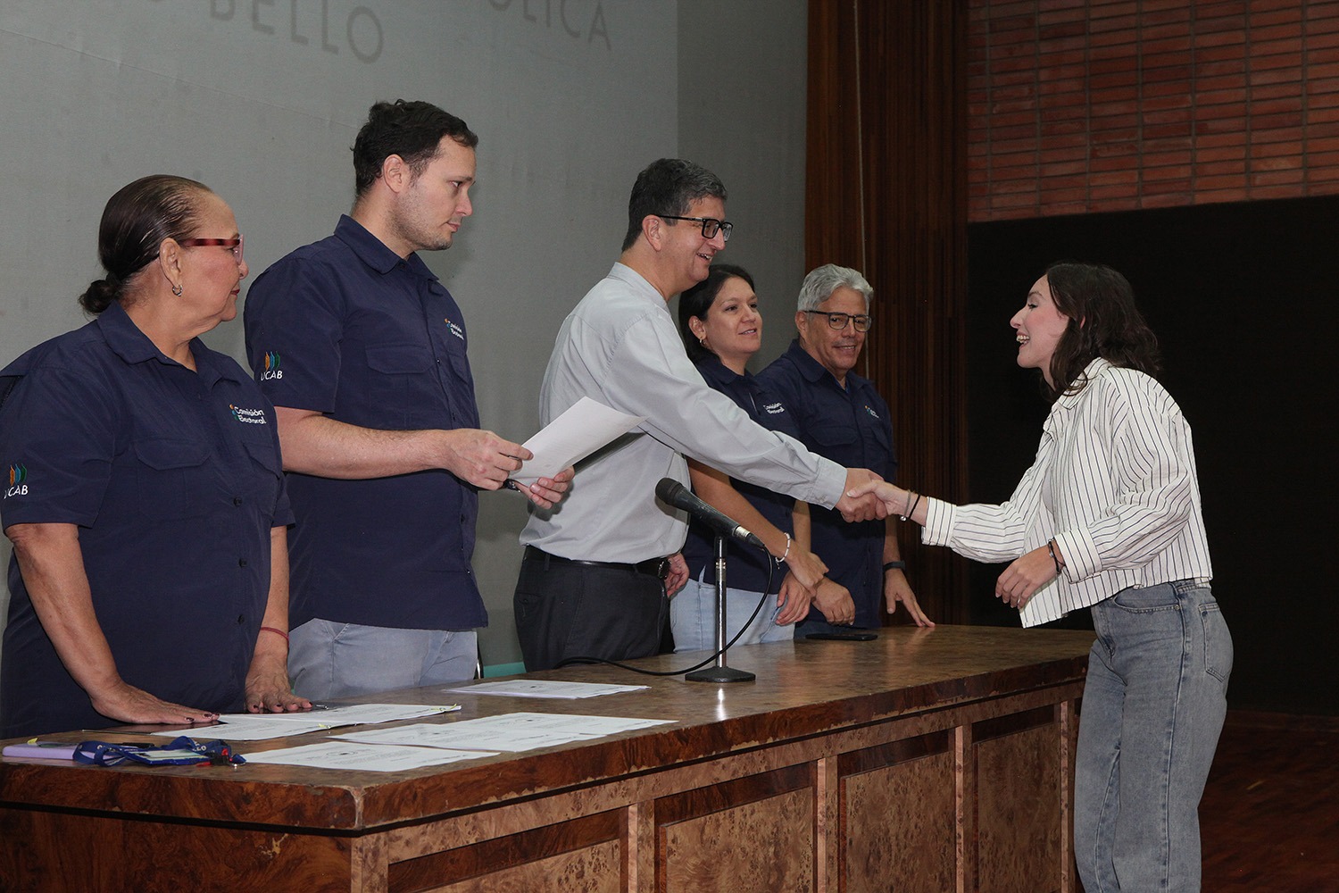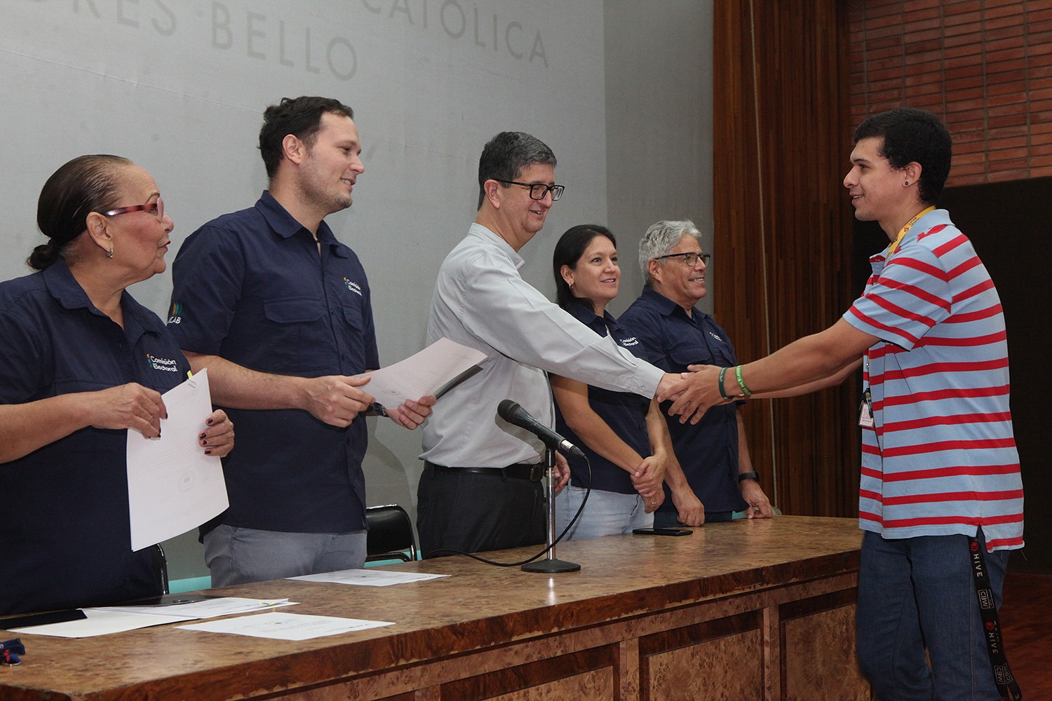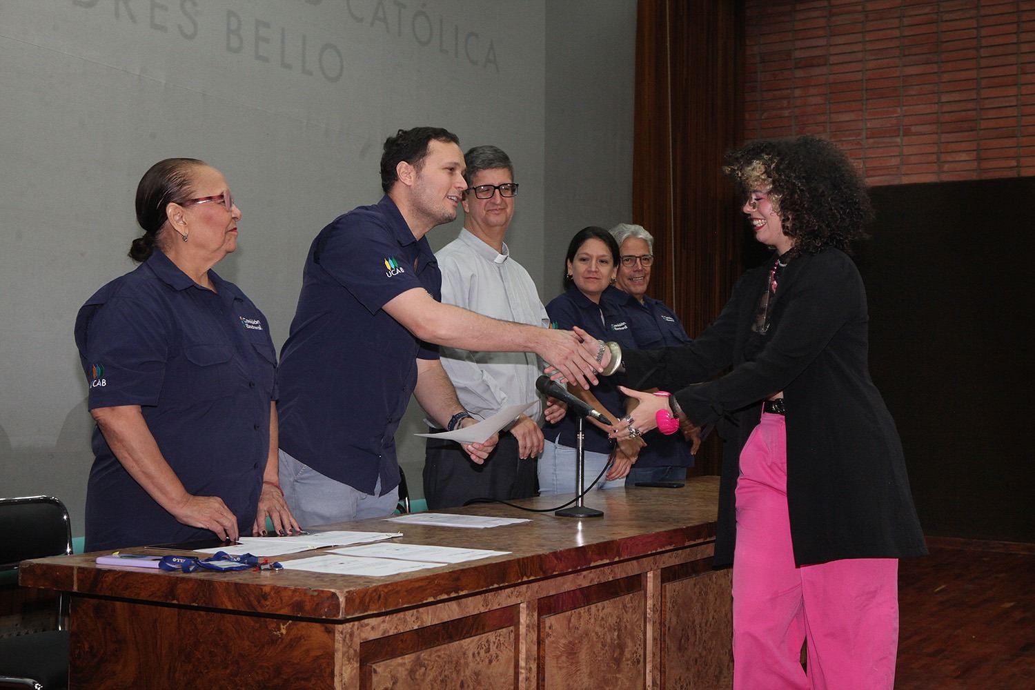 Presidieron el acto -celebrado el pasado 20 de junio en el auditorio Hermano Lanz- el rector Arturo Peraza, S.J.; el vicerrector de Identidad, Desarrollo Estudiantil y Extensión Social, Néstor Luis Luengo; y Rafael Mendoza, director general de Desarrollo Estudiantil.