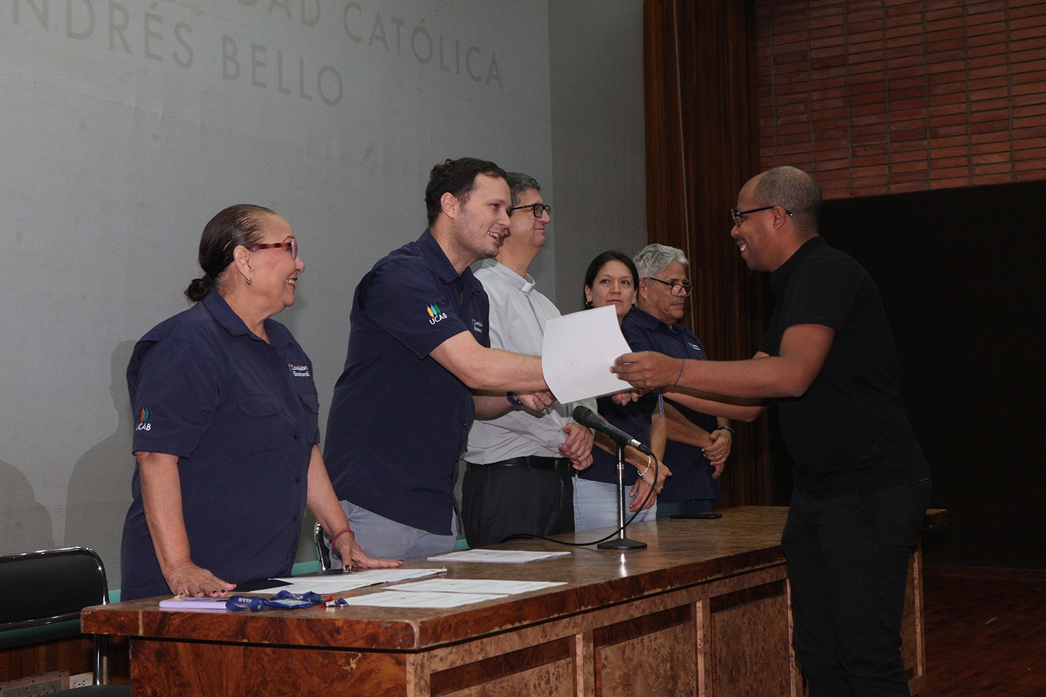 Presidieron el acto -celebrado el pasado 20 de junio en el auditorio Hermano Lanz- el rector Arturo Peraza, S.J.; el vicerrector de Identidad, Desarrollo Estudiantil y Extensión Social, Néstor Luis Luengo; y Rafael Mendoza, director general de Desarrollo Estudiantil.