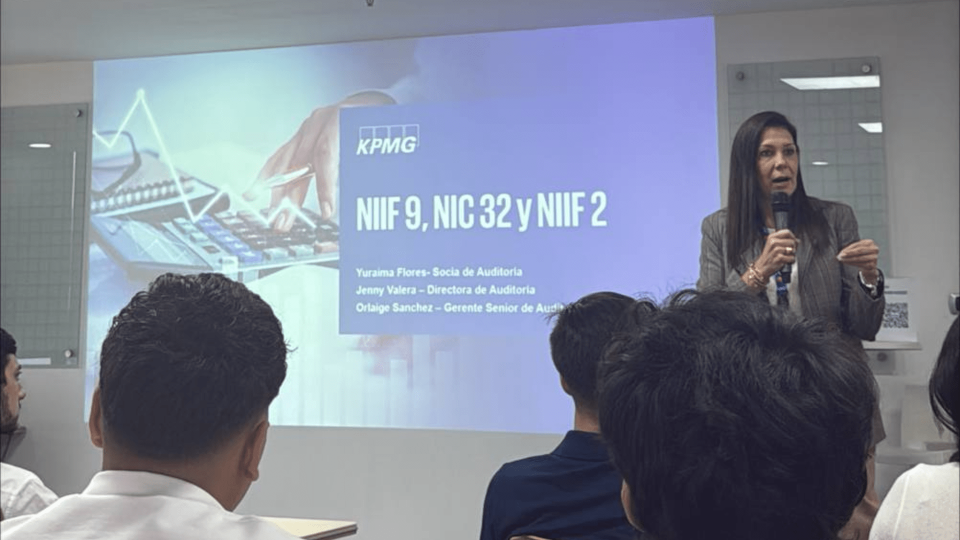 La actividad, organizada para la cátedra «Patrimonio y Endeudamiento» por la profesora Indira Moya y el departamento de Recursos Humanos de la firma, permitió a los ucabistas profundizar en la aplicación práctica de las Normas Internacionales de Información Financiera (NIIF 9, NIC 32 y NIIF 2), estándares que buscan garantizar la transparencia y comparabilidad de los estados financieros a nivel global.