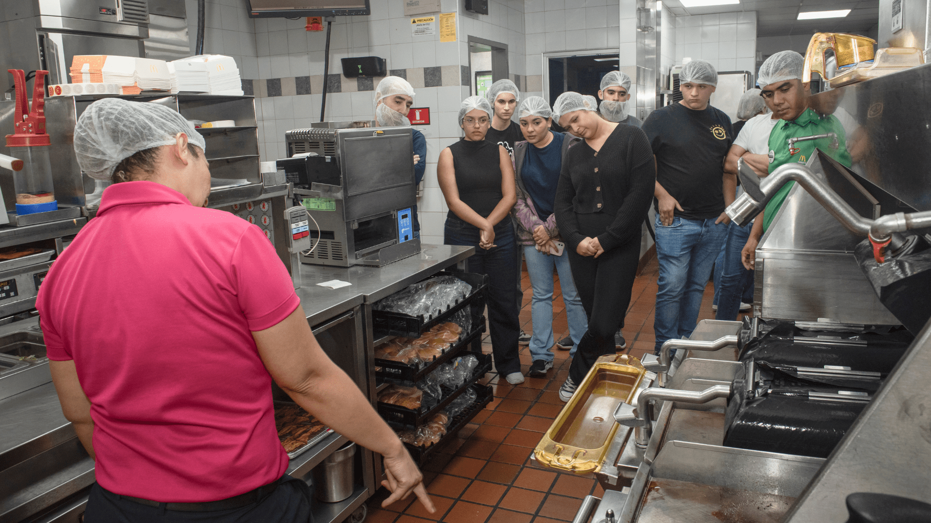 Durante la visita, los alumnos observaron en McDonald’s los procedimientos relacionados con gestión de inventarios, preparación de alimentos y servicio al cliente. Más tarde, en Kelly’s, profundizaron en la cadena de suministro, la producción y la logística que aseguran la disponibilidad de los insumos para la operación diaria de los restaurantes de la cadena.