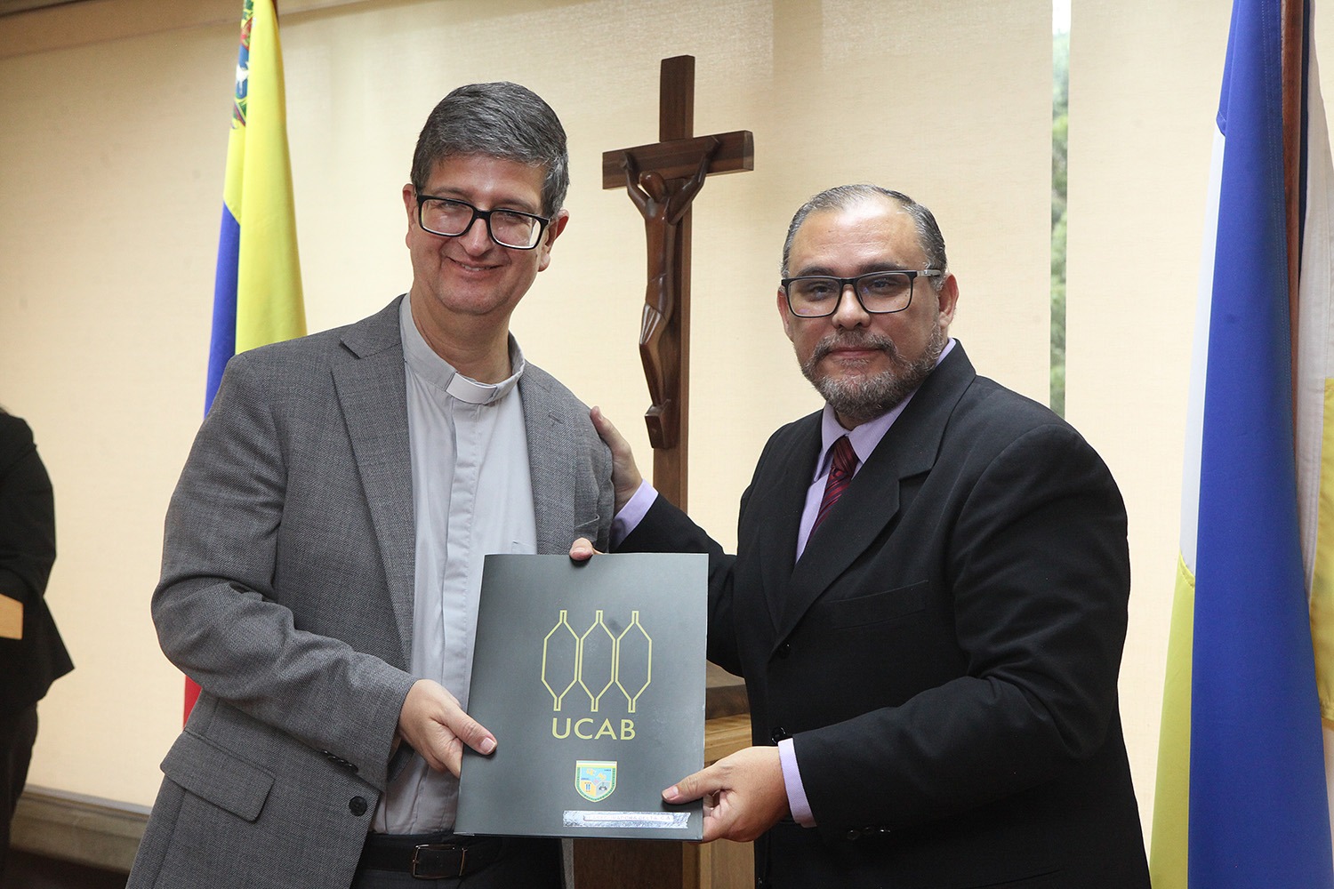 El acto de firma tuvo lugar en el salón del Consejo Universitario y fue presidido por el rector Arturo Peraza, S.J.; el vicerrector administrativo, Gustavo García; el vicerrector académico, José Francisco Juárez; el decano de la Facultad de Derecho, Jesús María Casal; y María Lidia Álvarez, directora de la Escuela de Derecho.