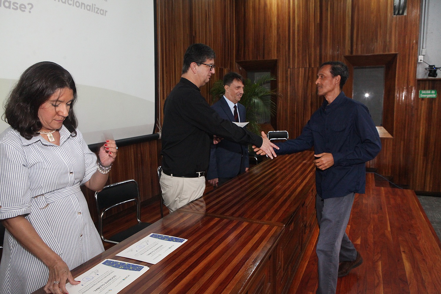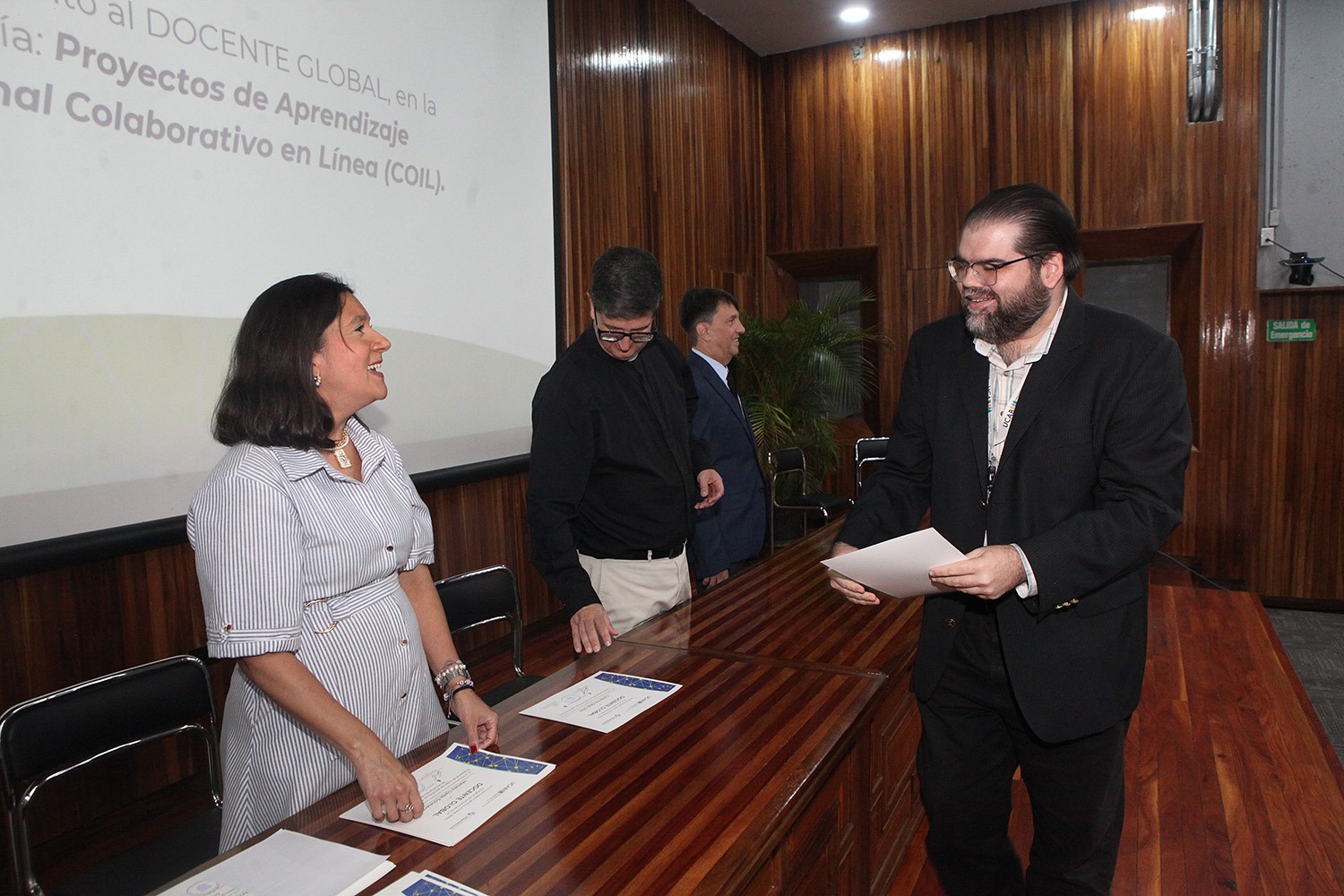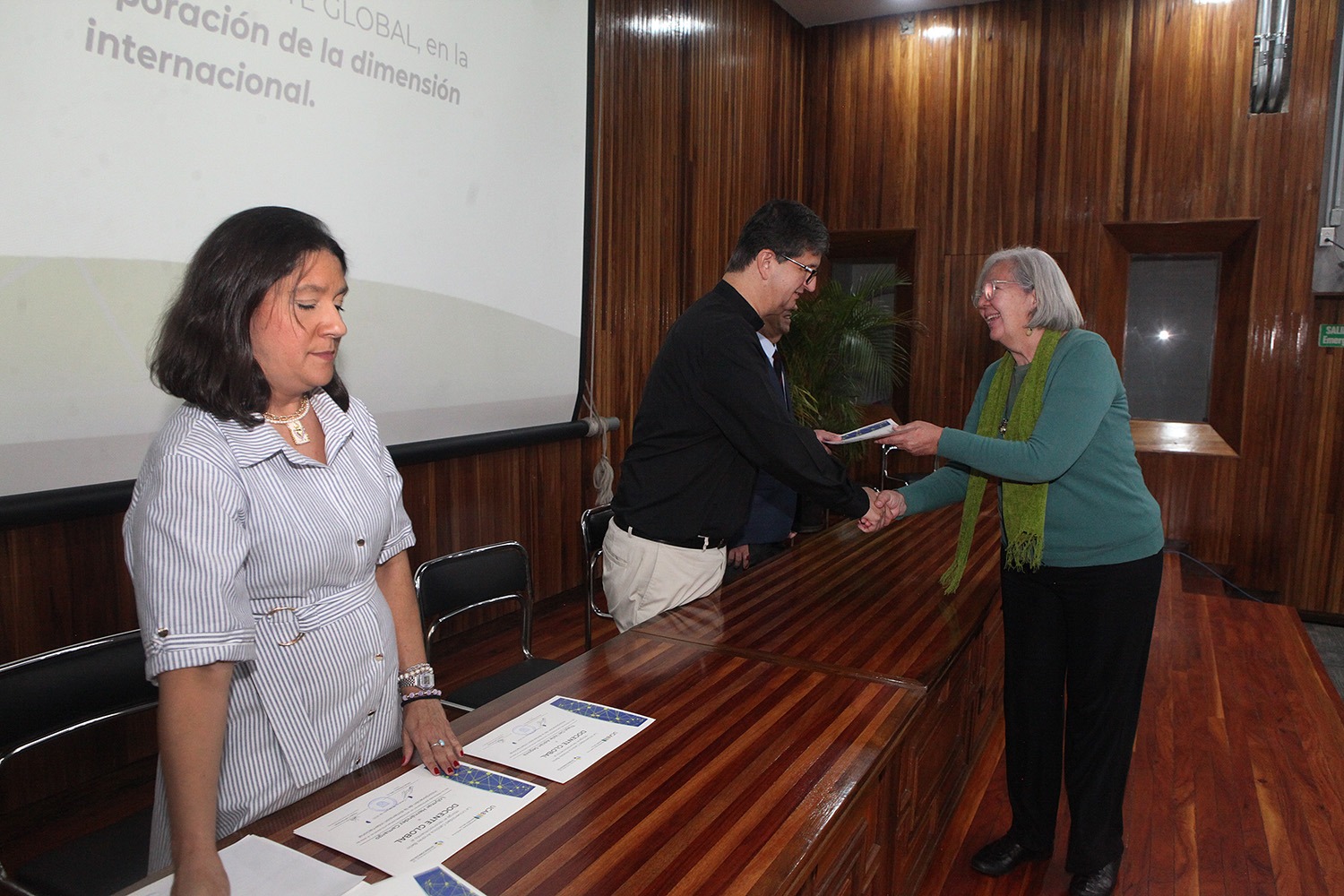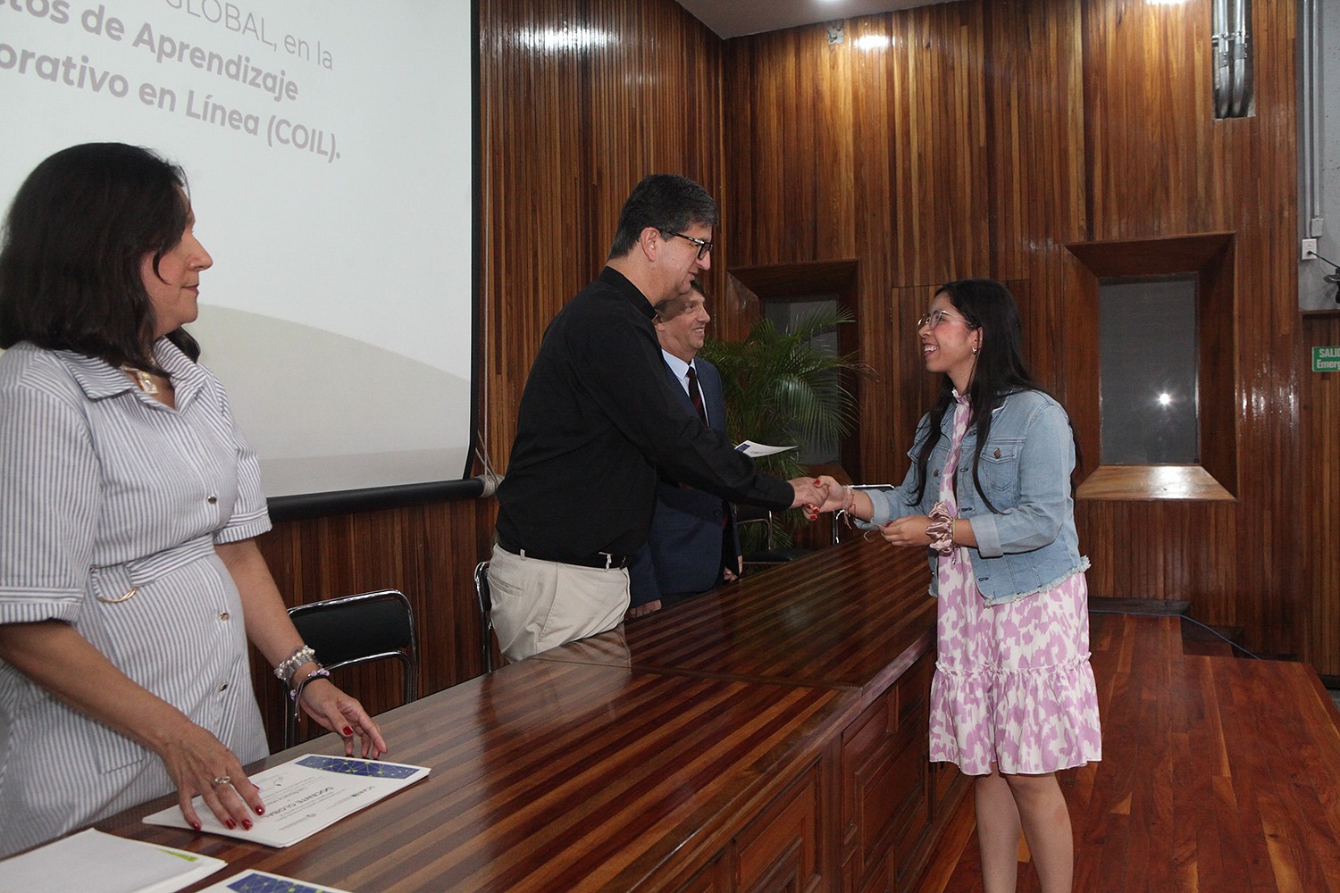 En el presidio acompañaron al rector la directora del Secretariado, Keyla Colmenares, y José Luis Jiménez, coordinador de los proyectos de Aprendizaje Internacional Colaborativo en Línea (COIL) de la universidad.