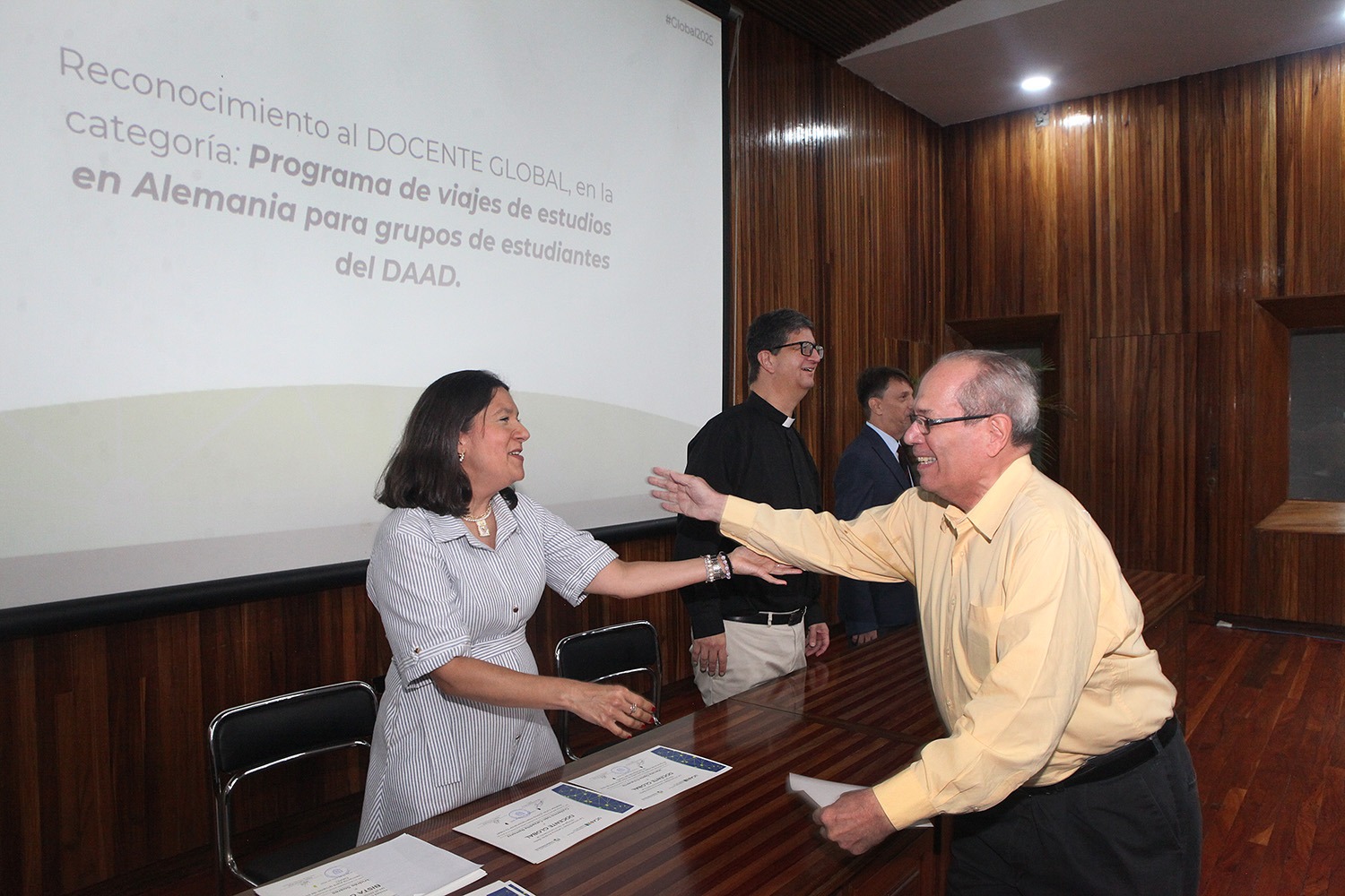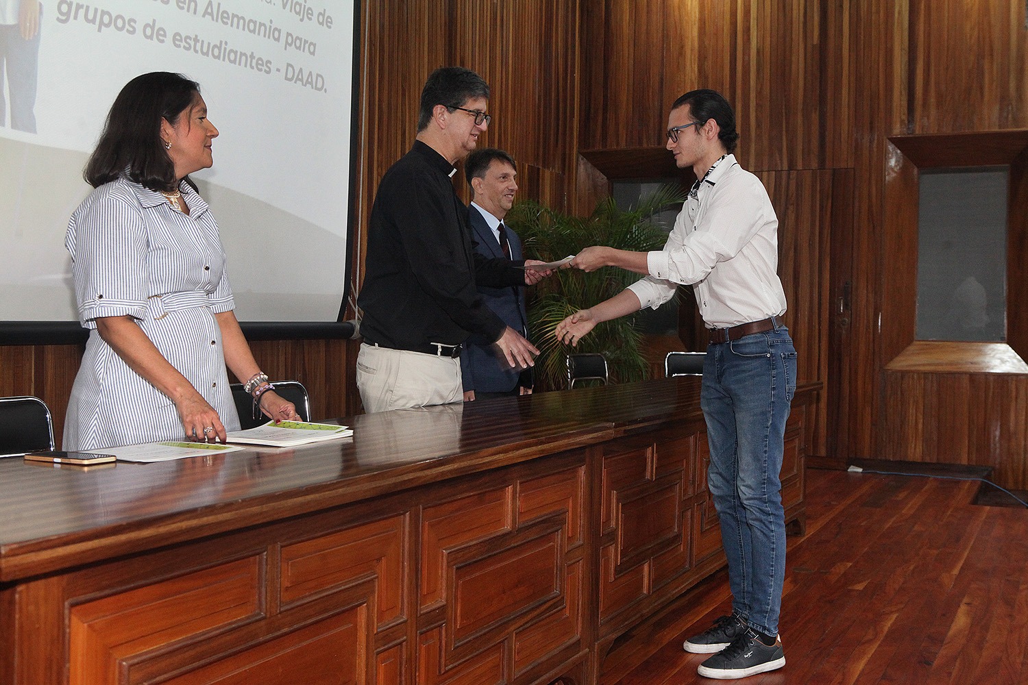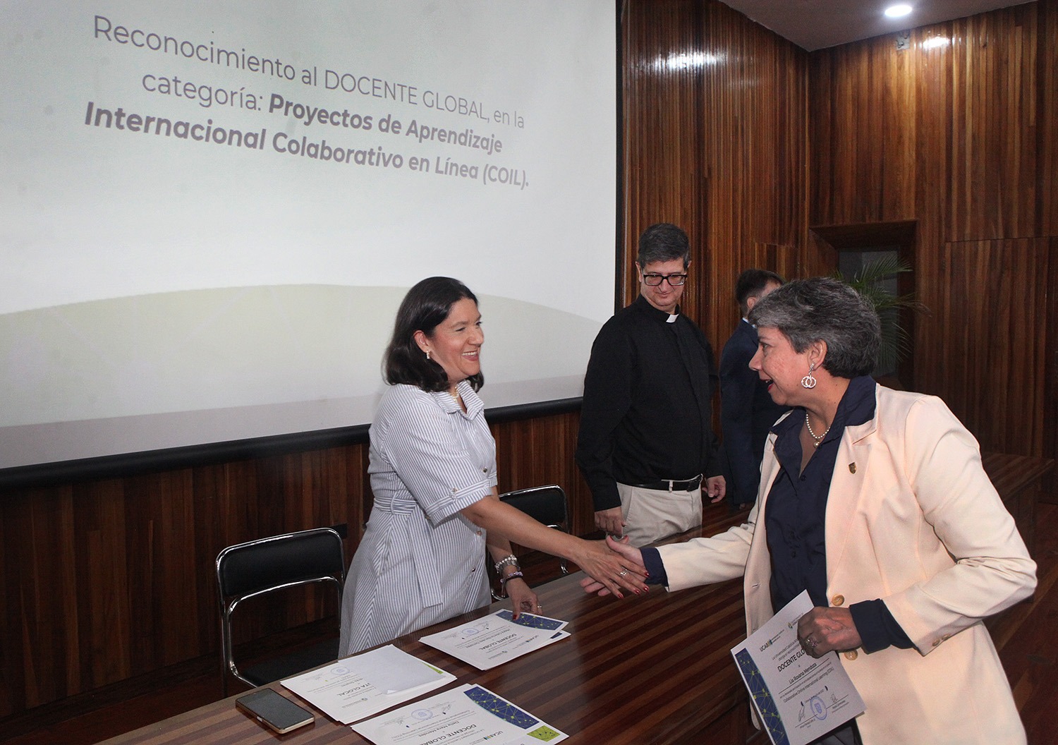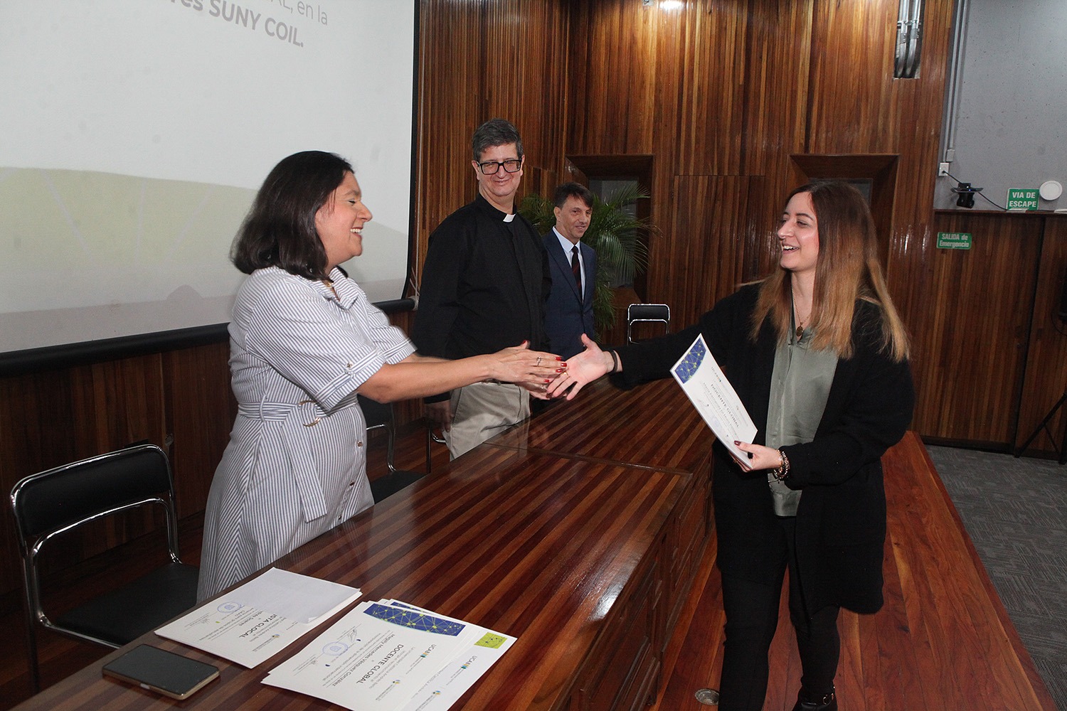 De manos del rector Arturo Peraza, S.J., 139 estudiantes y 29 profesores recibieron sus respectivos certificados por participar o promover actividades pedagógicas que apuntan hacia otras latitudes.