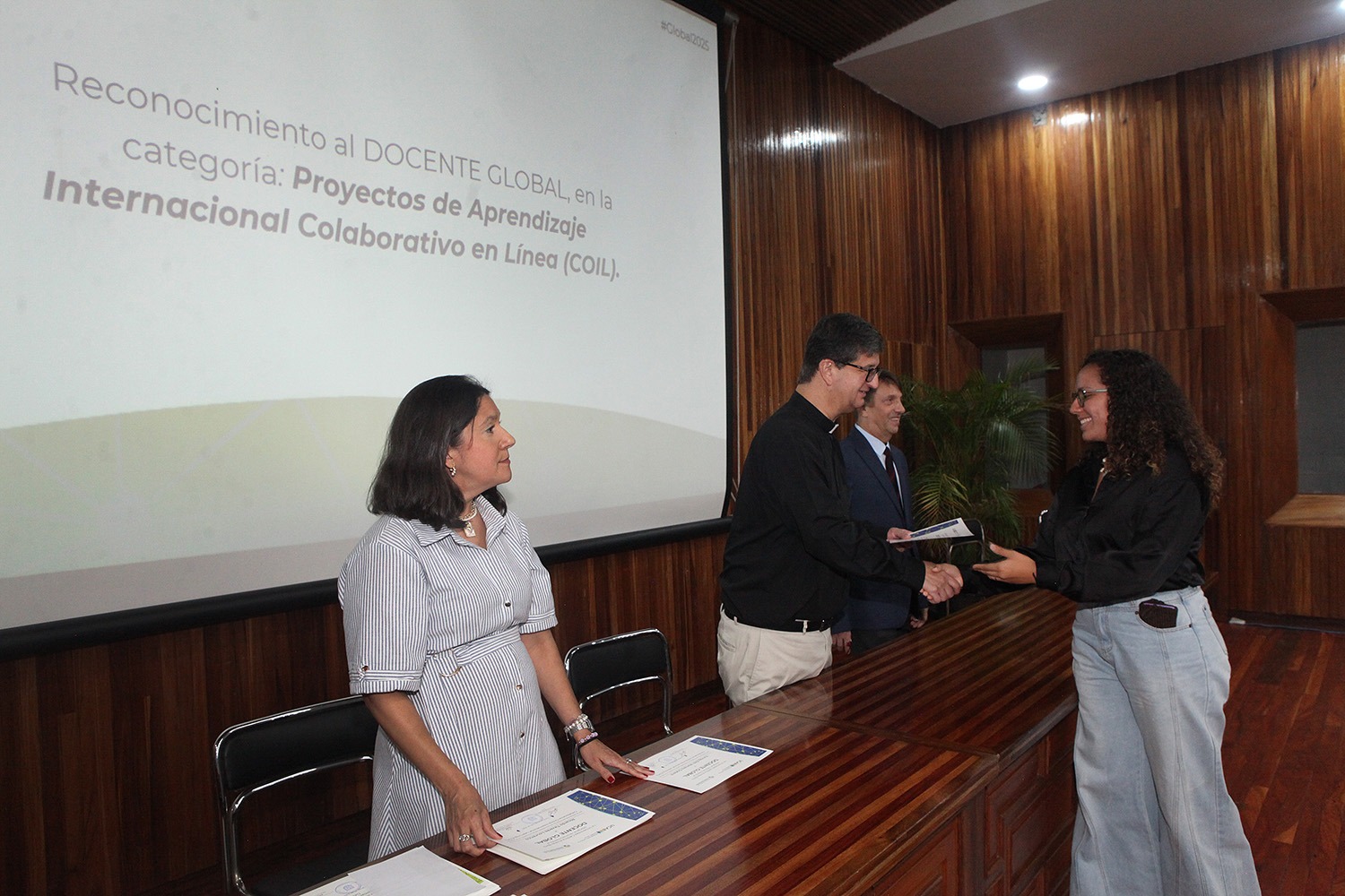 El Secretariado de Internacionalización distinguió a alumnos y profesores que participaron, durante el año 2024-2025, en actividades de movilidad académica como los proyectos COIL, modelos de Naciones Unidas, clases espejo y otras. «Más que nunca, es necesario el desarrollo de competencias globales e interculturales para que pueda existir entendimiento y tolerancia», dijo a los homenajeados Keyla Colmenares, directora del Secretariado