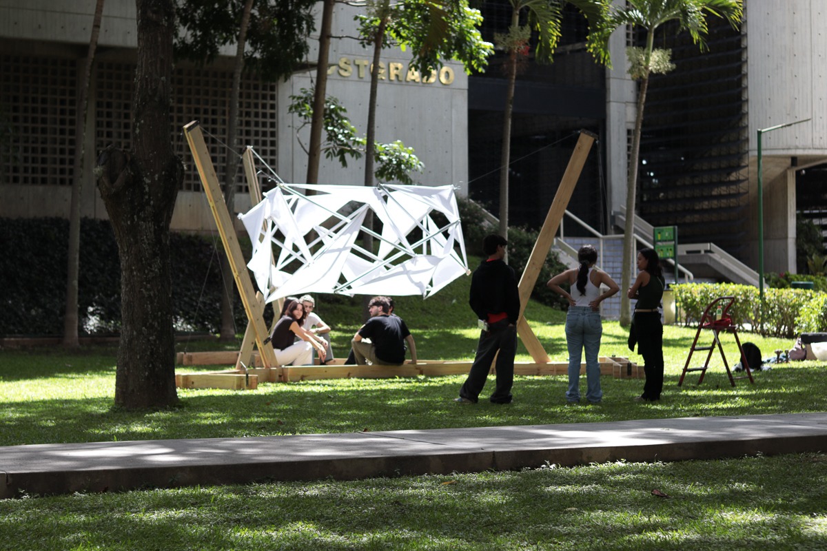Este ejercicio académico se tituló “Exploraciones sobre lo constructivo», en el cual los futuros arquitectos debían diseñar una propuesta de pabellón que materializara una experiencia espacial y sensorial a través de un concepto específico, en lugar de ser pensada para resolver un uso determinado.
