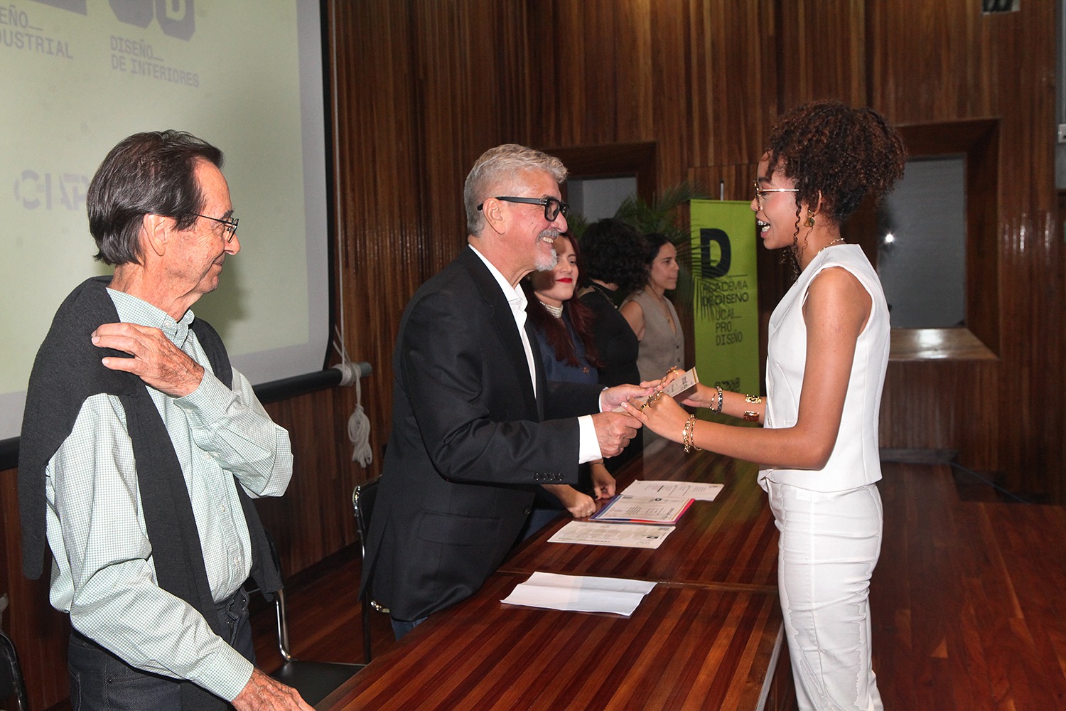 Les acompañaron los responsables de cada mención: Eddymir Briceño por Diseño Gráfico; Mikel Zuloaga por Diseño Industrial y Martina Centeno por Diseño de Interiores.