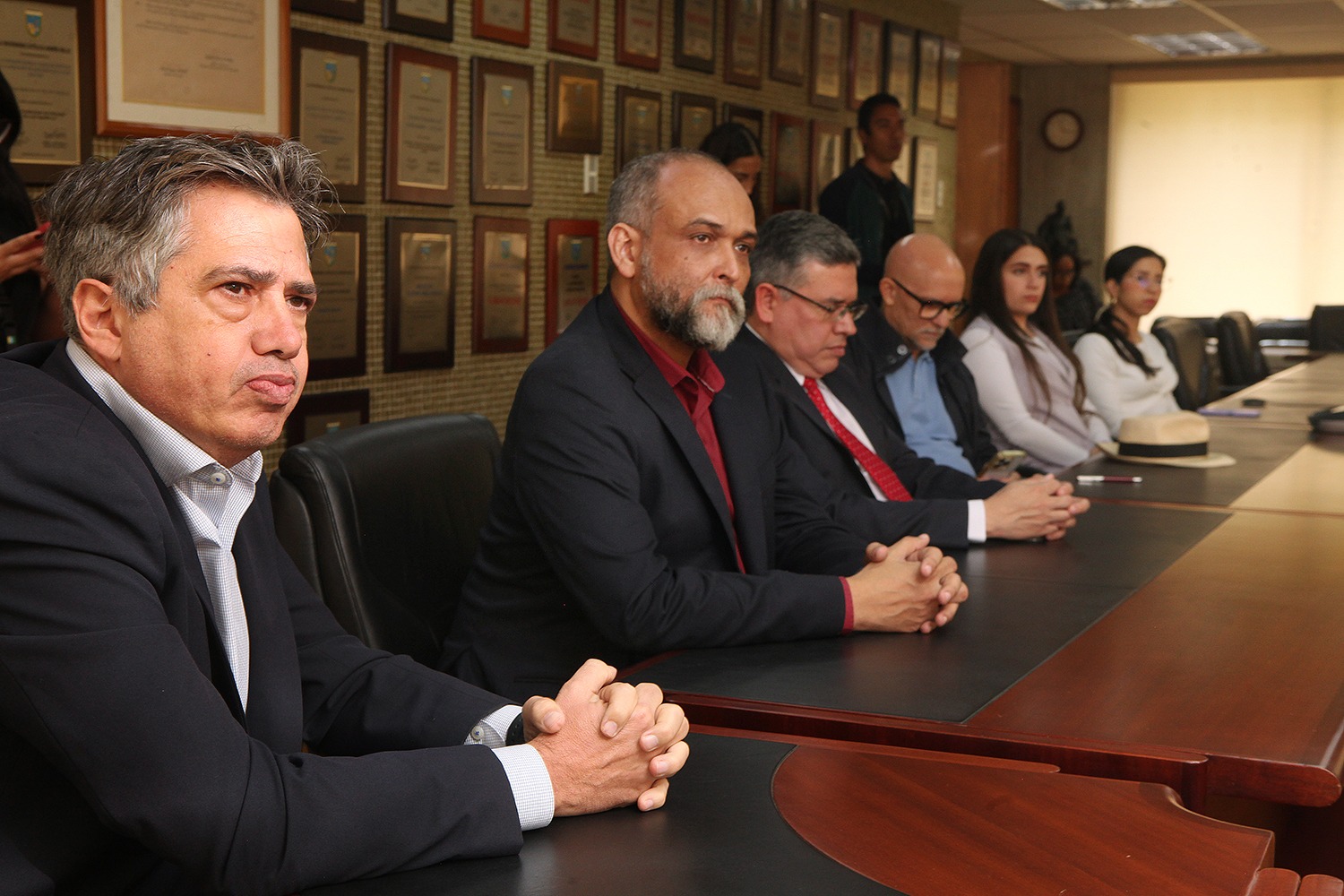 Les acompañaron el vicerrector de Identidad, Desarrollo Estudiantil y Extensión Social, Néstor Luis Luengo; el decano de la Facultad de Ciencias Económicas y Sociales (FACES), Ronald Balza Guanipa, además de profesores de la casa de estudios e individuos de número de la ANCE.