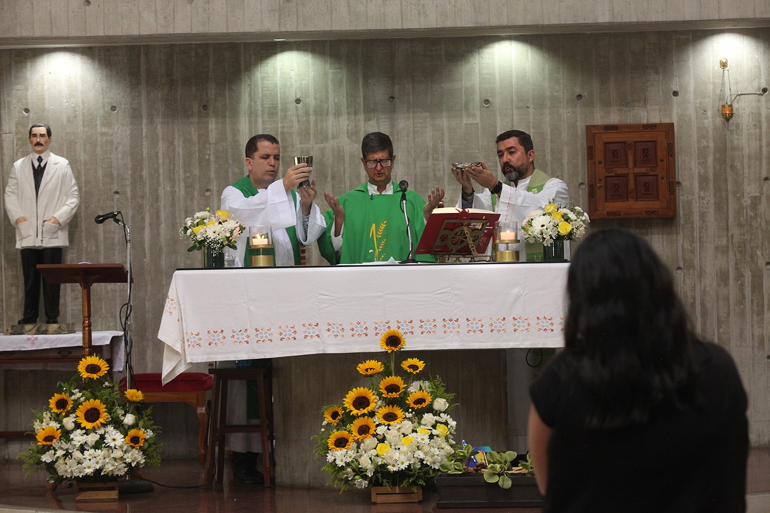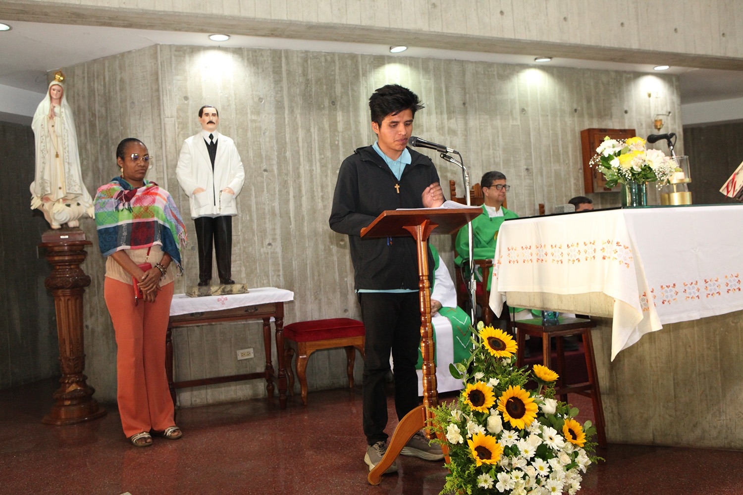 La ceremonia religiosa, encomendada a los beatos venezolanos Carmen Rendiles y José Gregorio Hernández —próximos a ser canonizados por la Iglesia católica—, fue oficiada por el rector Arturo Peraza, S.J., en compañía del director de Identidad y Misión, César Muziotti,S.J., y el párroco universitario, Danny Socorro ,S.J.