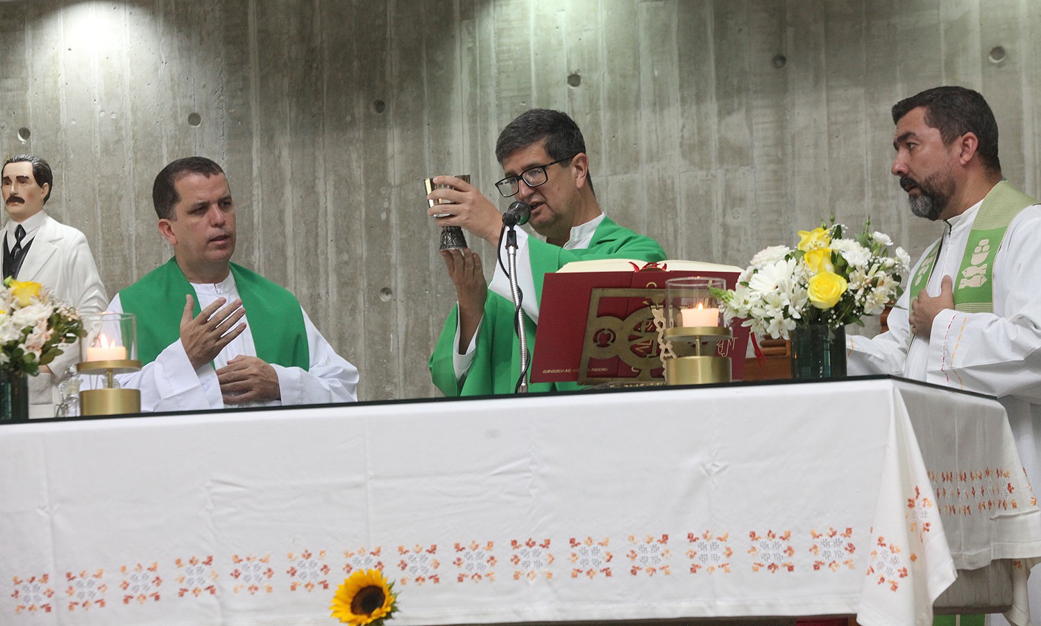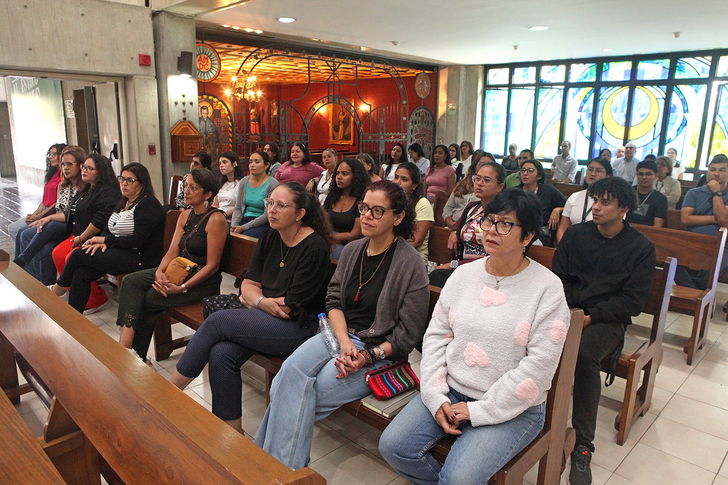 La ceremonia religiosa, encomendada a los beatos venezolanos Carmen Rendiles y José Gregorio Hernández —próximos a ser canonizados por la Iglesia católica—, fue oficiada por el rector Arturo Peraza, S.J., en compañía del director de Identidad y Misión, César Muziotti,S.J., y el párroco universitario, Danny Socorro ,S.J.