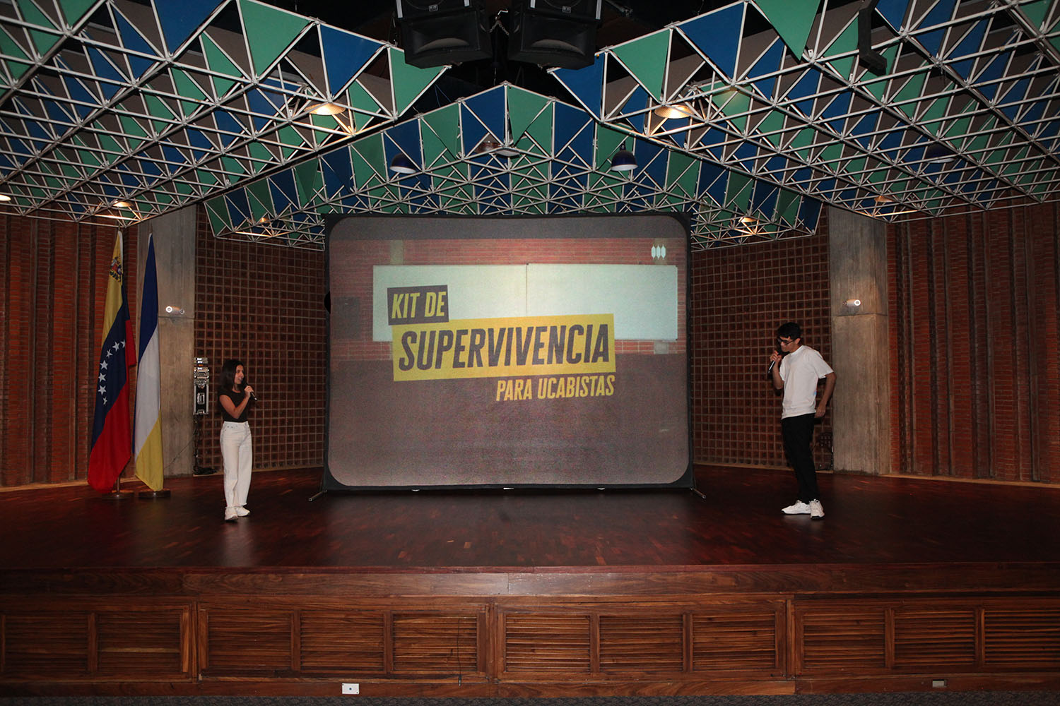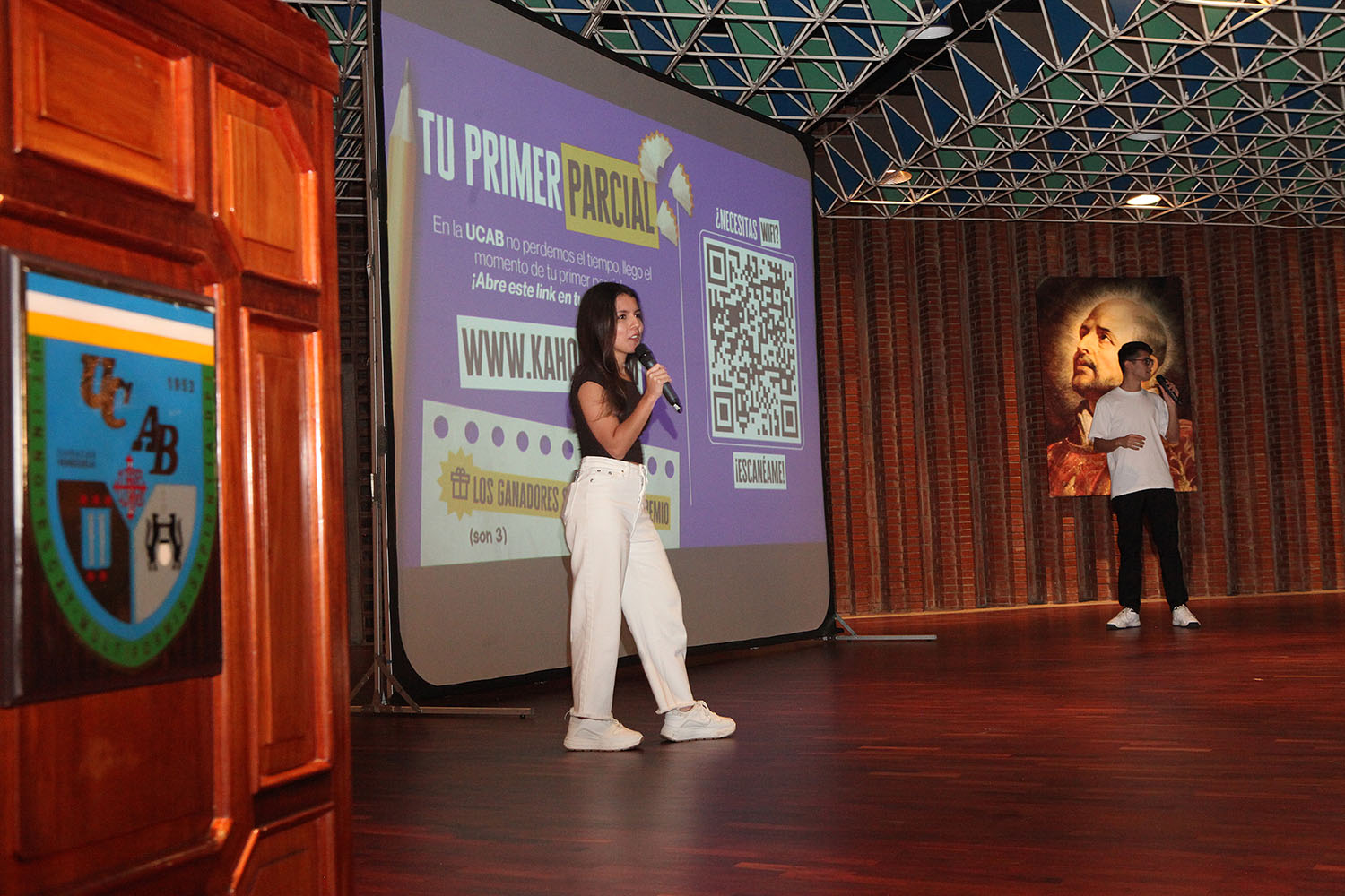 Seguidamente, Adriana Méndez y Mizael Peña, cursantes de Administración de Empresas y Derecho, presentaron el «Kit de supervivencia para ucabistas», que incluye los diferentes recursos de apoyo accesibles para los alumnos y las recomendaciones prácticas para desenvolverse con éxito.