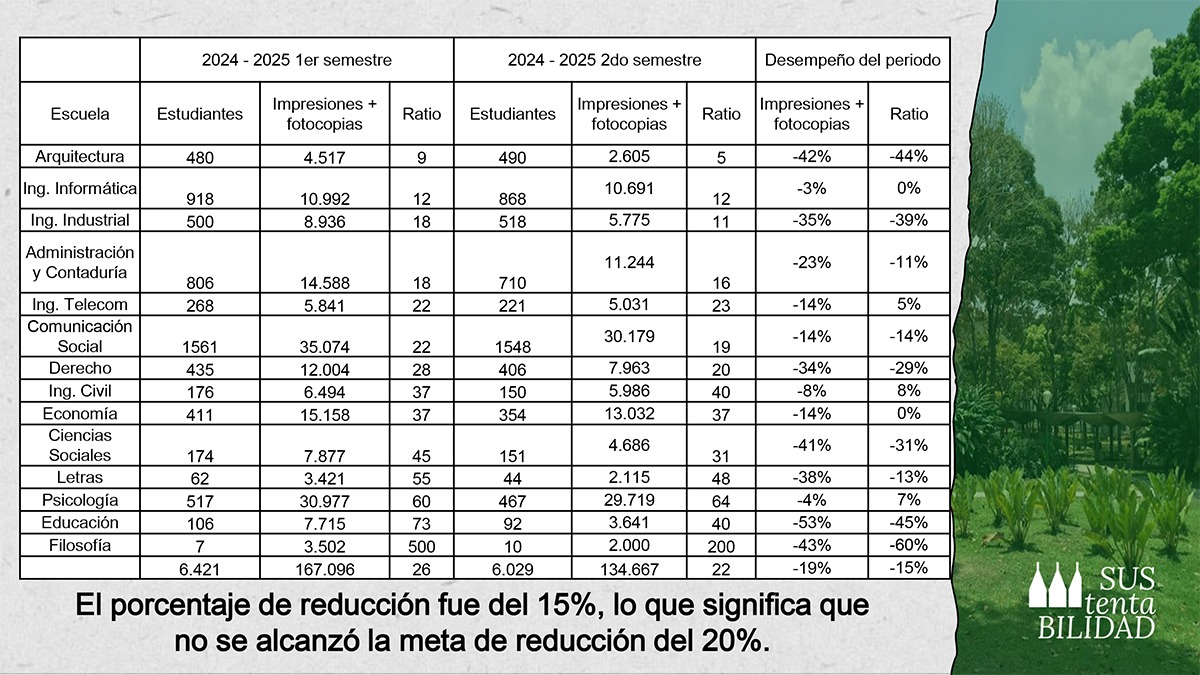 El objetivo propuesto era reducir, en un 20%, las impresiones y fotocopias de esas unidades al finalizar el semestre marzo- julio 2025, en comparación con el período previo.