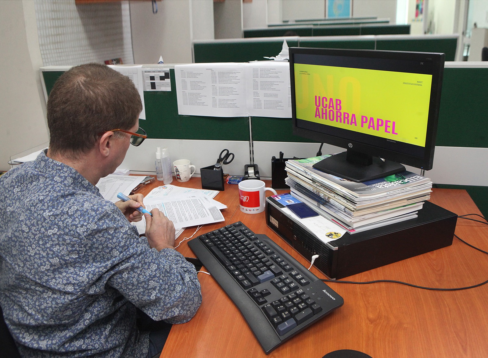 Según explicó Joaquín Benítez -director de Sustentabilidad Ambiental-, aunque buena parte del uso de papel que hace la UCAB está justificado por procesos administrativos, académicos, legales y otros de orden operativo, el compromiso ecológico de la universidad exige gestionar de manera responsable las impresiones o fotocopias, por lo que hay que incidir de manera directa en los hábitos de los trabajadores.