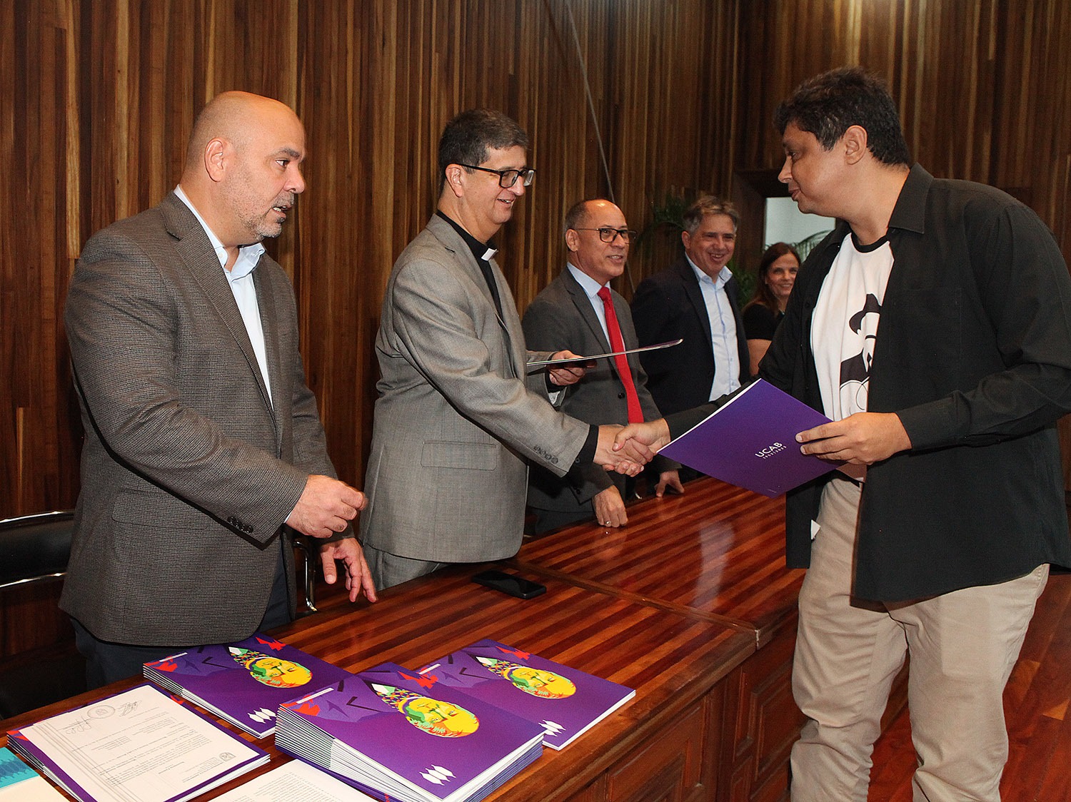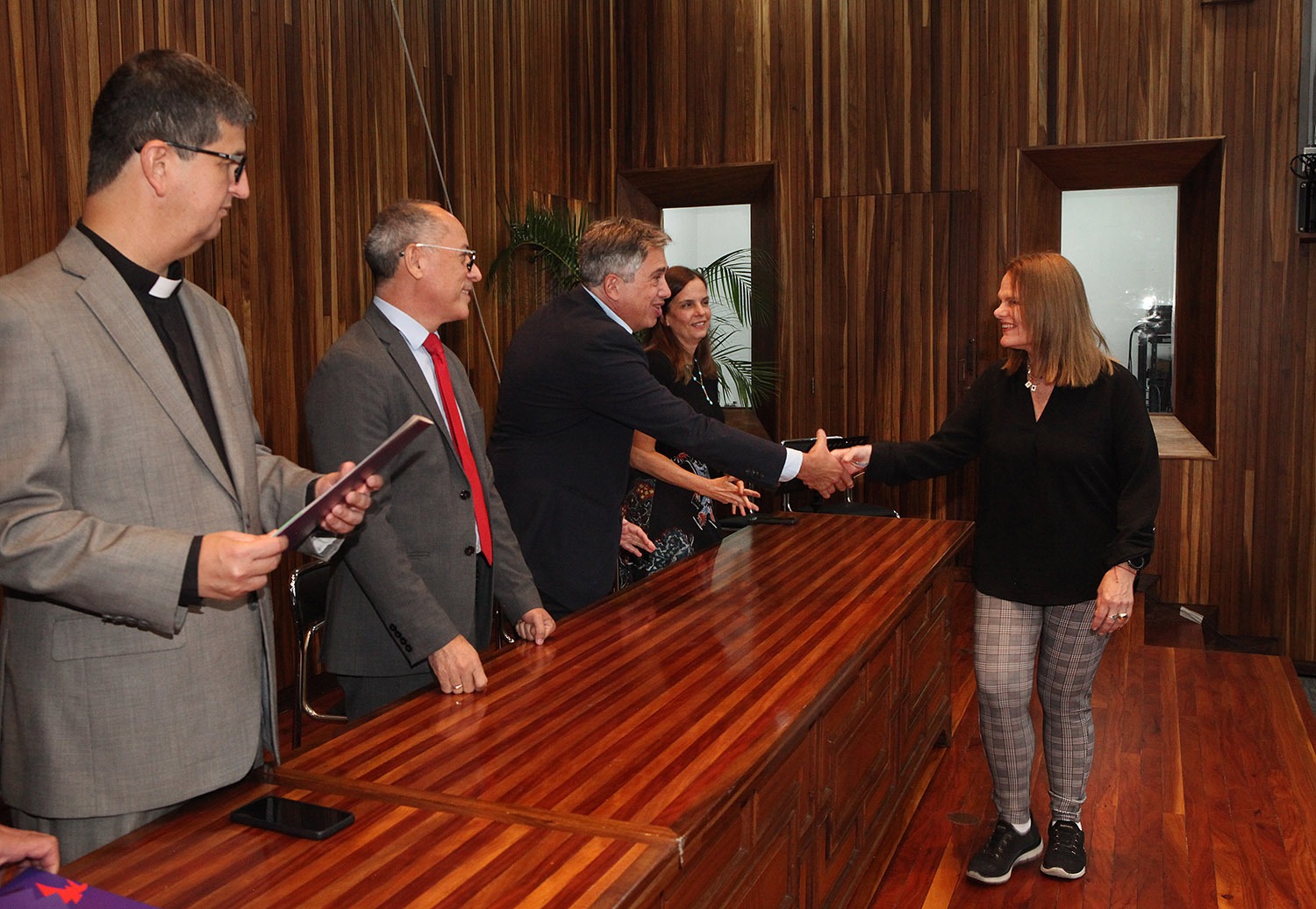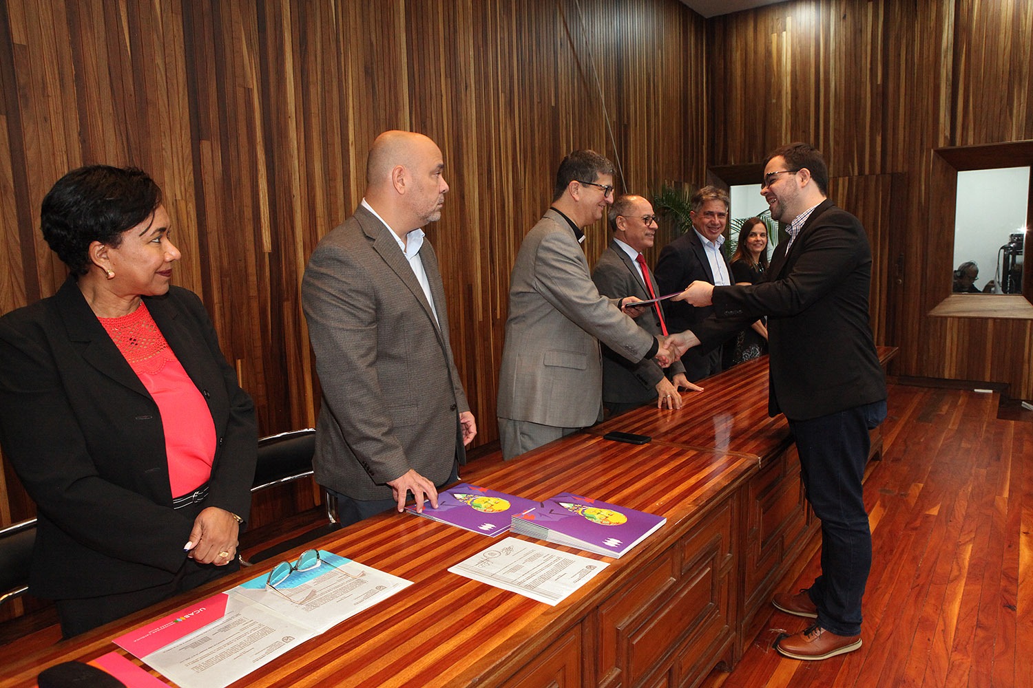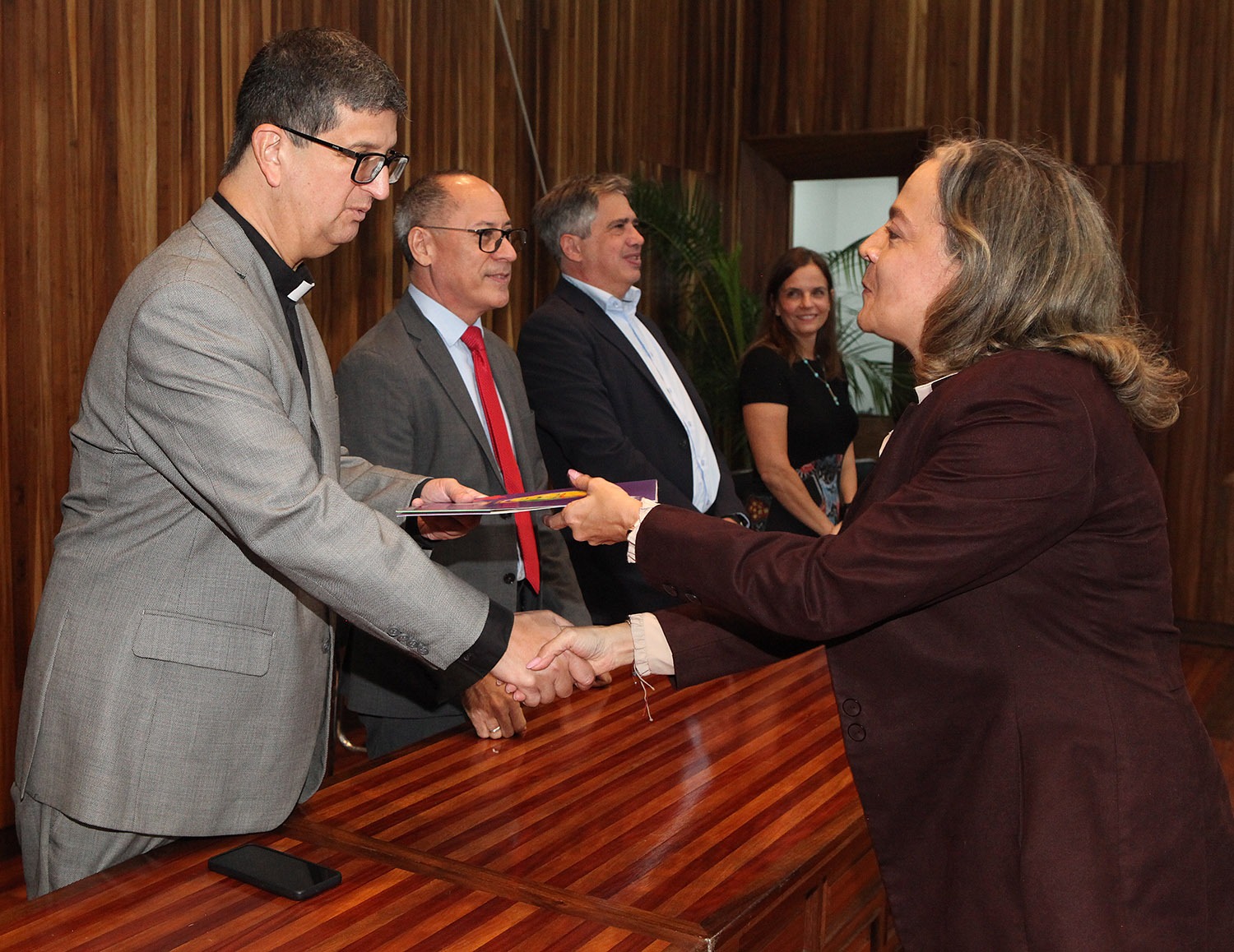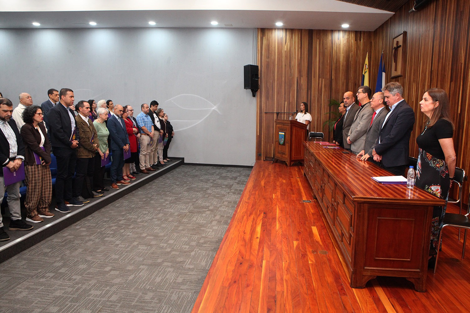 Presidieron el acto el rector Arturo Peraza, S.J.; Gustavo García, vicerrector administrativo; José Francisco Juárez, vicerrector académico; Néstor Luis Luengo, vicerrector de Identidad, Desarrollo Estudiantil y Extensión Social, y la secretaria general, Magaly Vásquez. Les acompañó Elizabeth Fórmica, directora general de Recursos Humanos.
