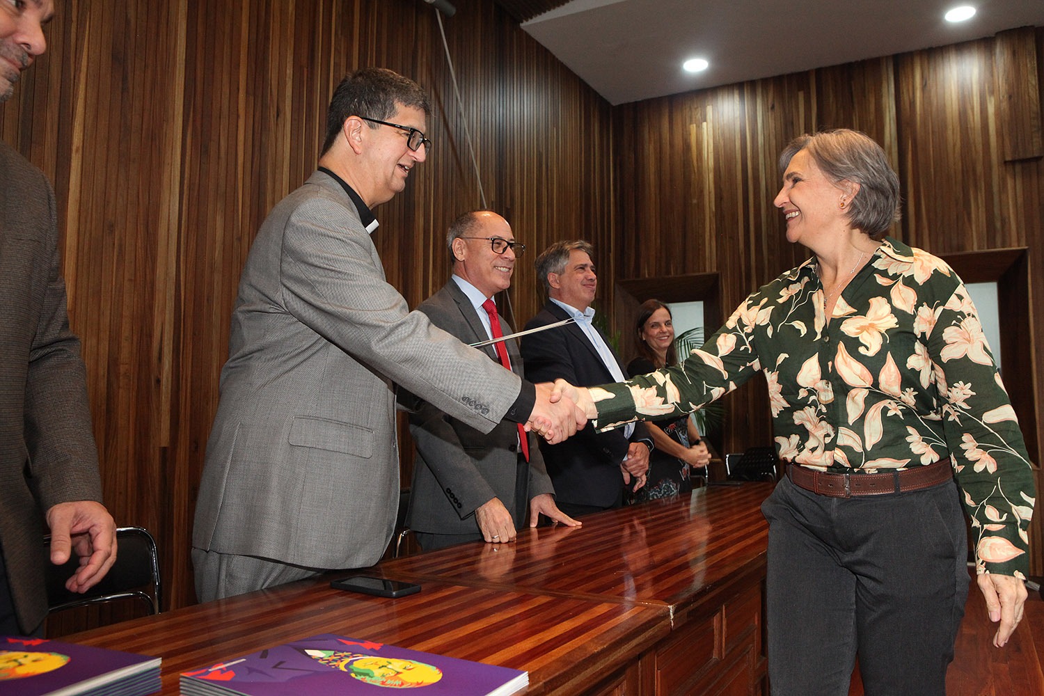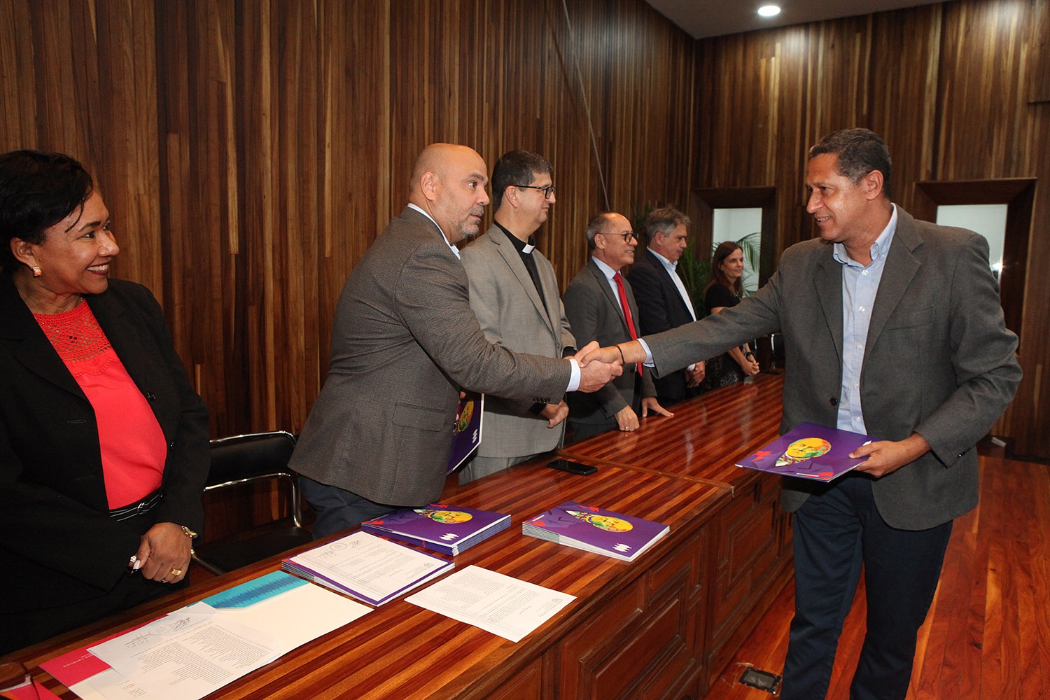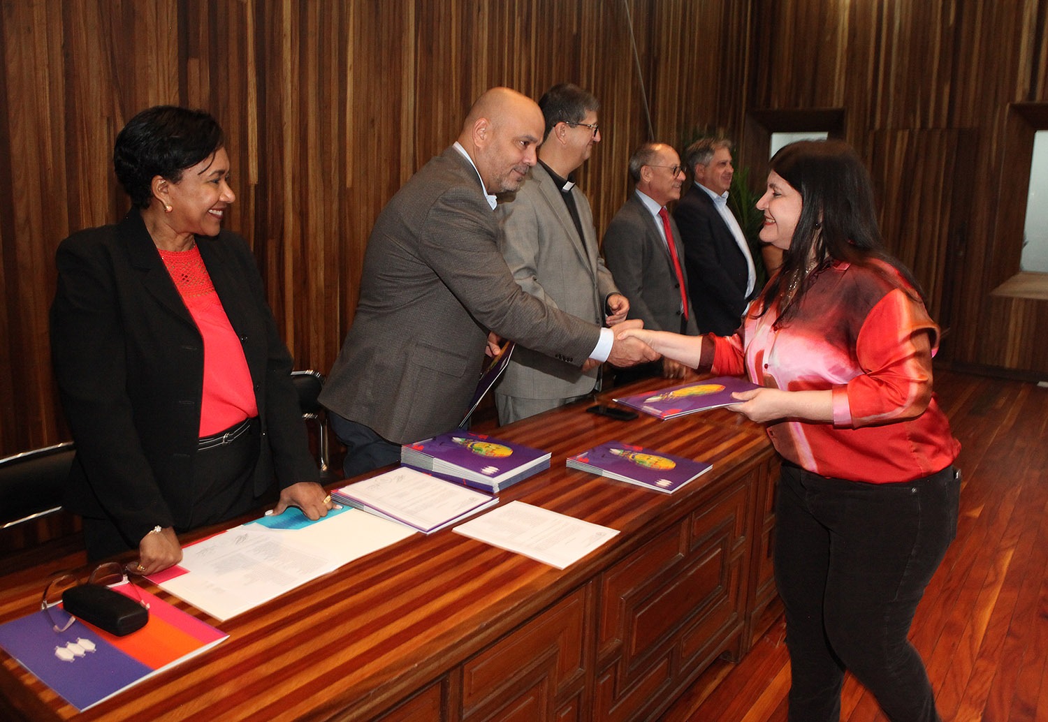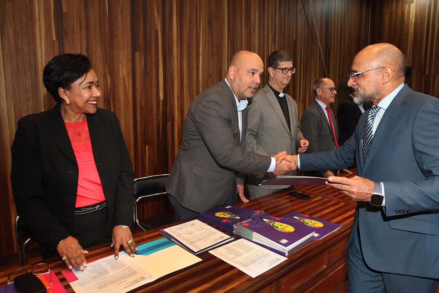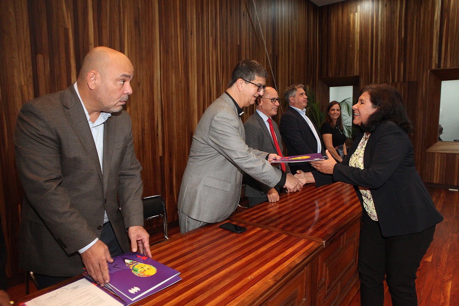 Presidieron el acto el rector Arturo Peraza, S.J.; Gustavo García, vicerrector administrativo; José Francisco Juárez, vicerrector académico; Néstor Luis Luengo, vicerrector de Identidad, Desarrollo Estudiantil y Extensión Social, y la secretaria general, Magaly Vásquez. Les acompañó Elizabeth Fórmica, directora general de Recursos Humanos.