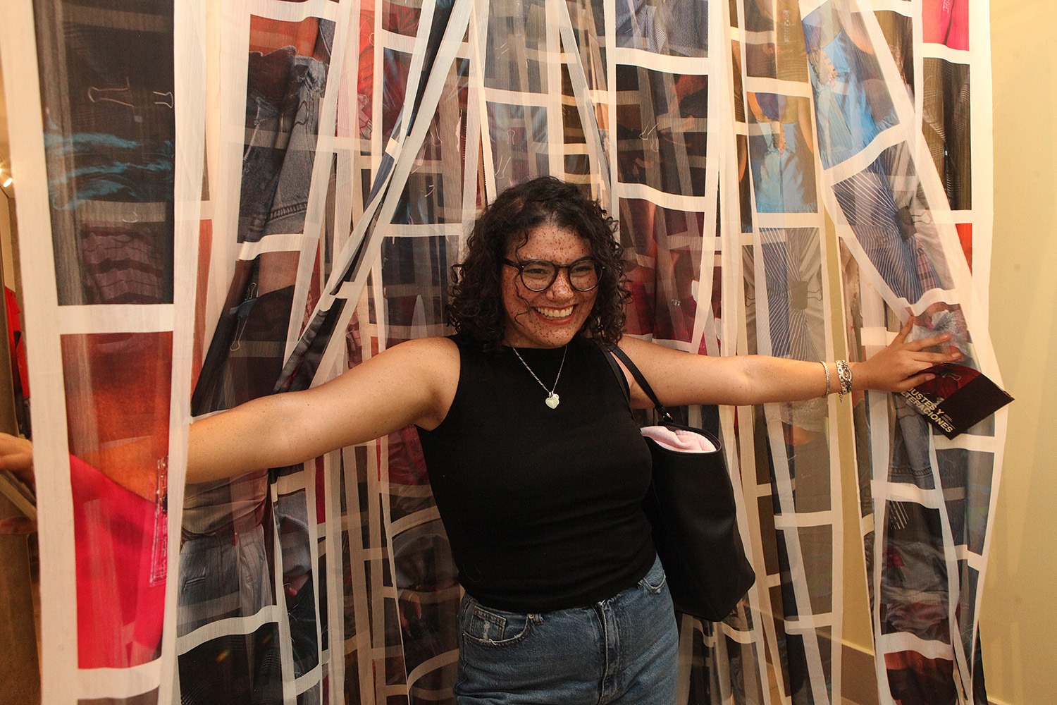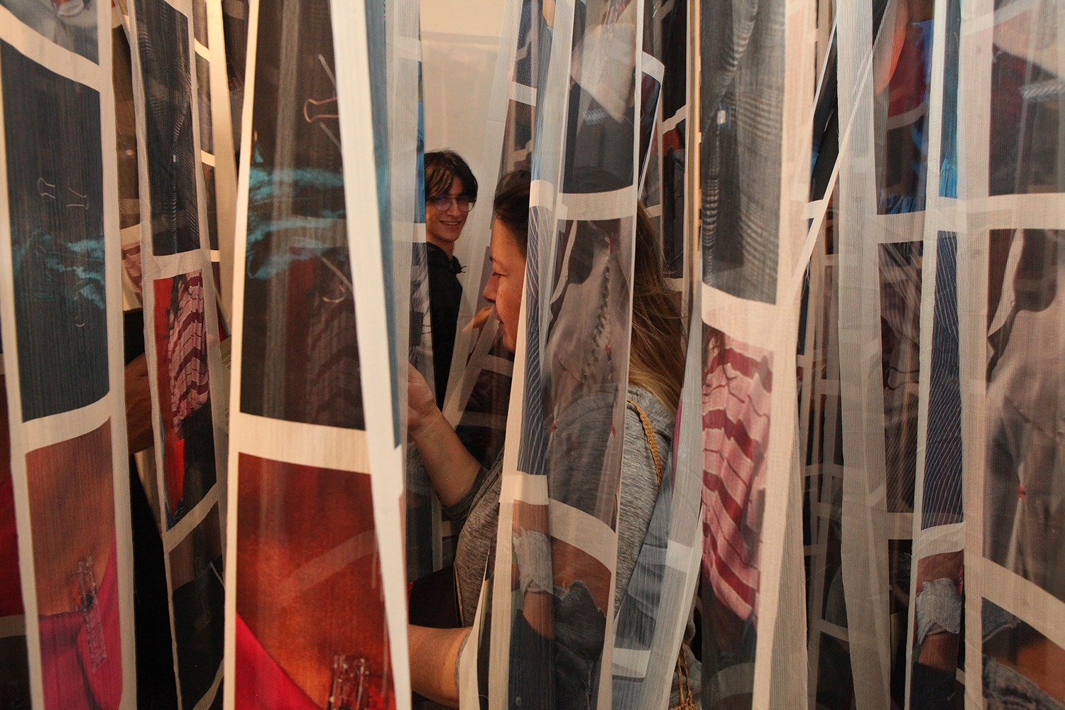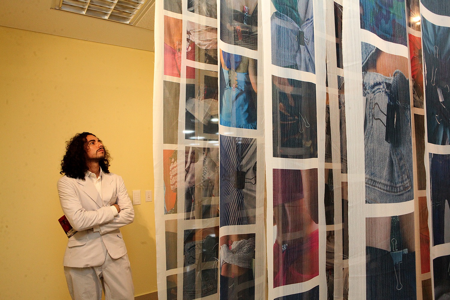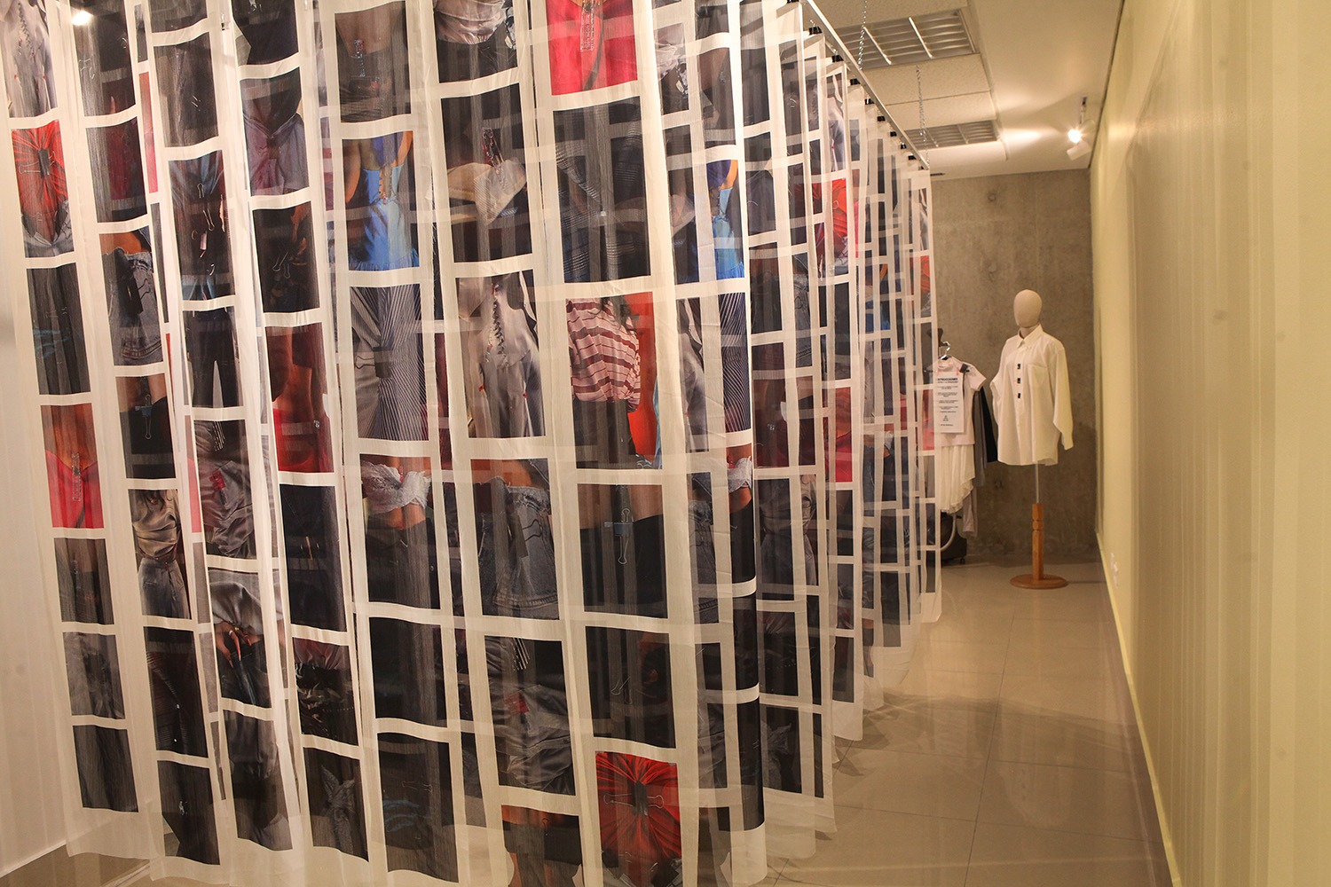 Las fotografías de «Ajustes y Alteraciones» están impresas en más de 120 telas suspendidas para que los visitantes miren, toquen y se sumerjan, a su gusto, en una suerte de bosque o laberinto en el que saltan a la vista, en primer plano o close up, cuerpos de distinto volumen con vestidos, jeans o blusas precisamente ajustados gracias a las pinzas.