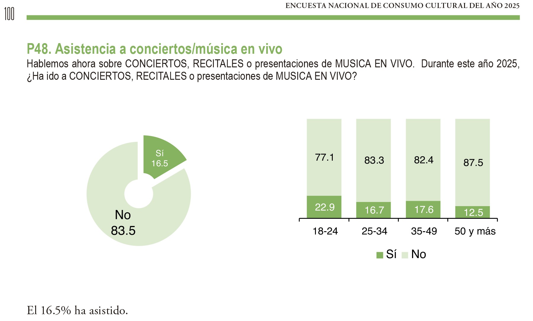 Los jóvenes de 18 a 24 años son el público principal de los shows musicales en vivo: 22,9% de ellos afirmó asistir.