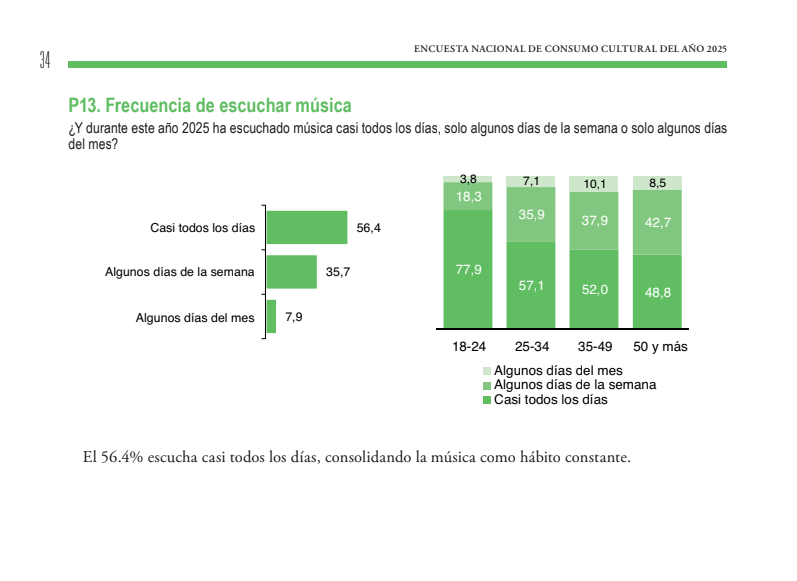 Entretanto, la música es un producto de consumo «casi universal», pues 9 de cada 10 venezolanos se distraen con ella y más de la mitad (56,4%) lo hace a diario.