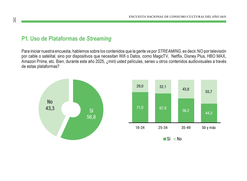 La encuesta también indica que más de la mitad de los entrevistados (56,8%) utilizó casi todos los días plataformas de streaming para disfrutar de películas, series u otros programas.
