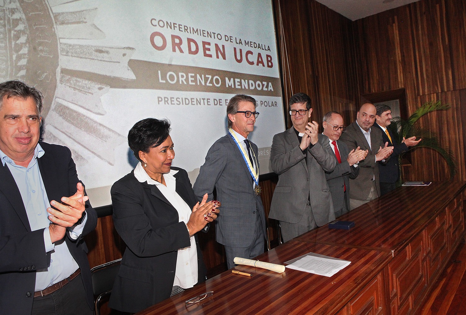La Universidad Católica Andrés Bello entregó su máximo galardón, la Orden UCAB, al empresario Lorenzo Mendoza en reconocimiento a su «liderazgo visionario» y su sostenida apuesta por el desarrollo del país desde la década de 1990, cuando asumió la presidencia de Empresas Polar.