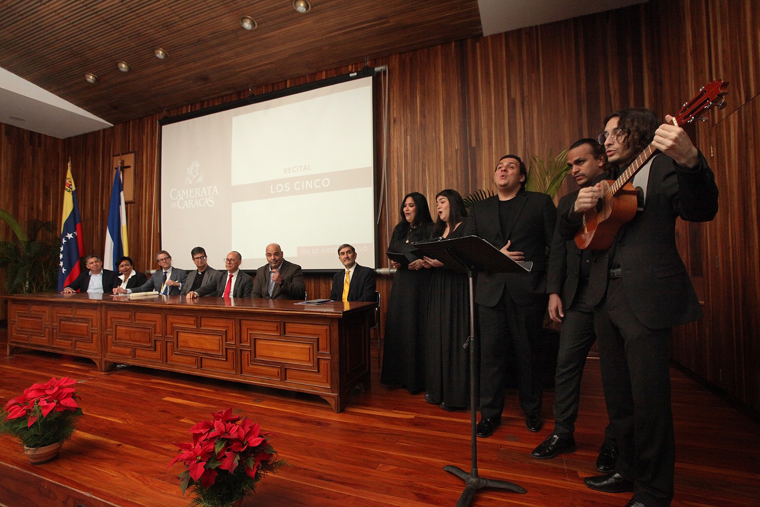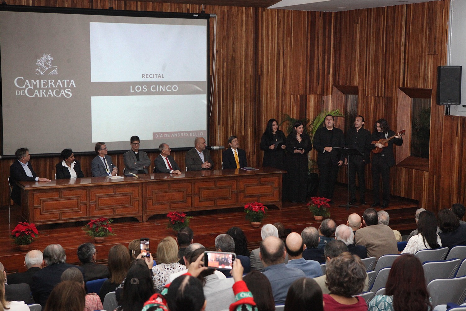 La ceremonia por el Día de Andrés Bello en la UCAB finalizó con una presentación del grupo «Los cinco» de la Camerata de Caracas, que ofrecio un repertorio de cantos tradicionales venezolanos.