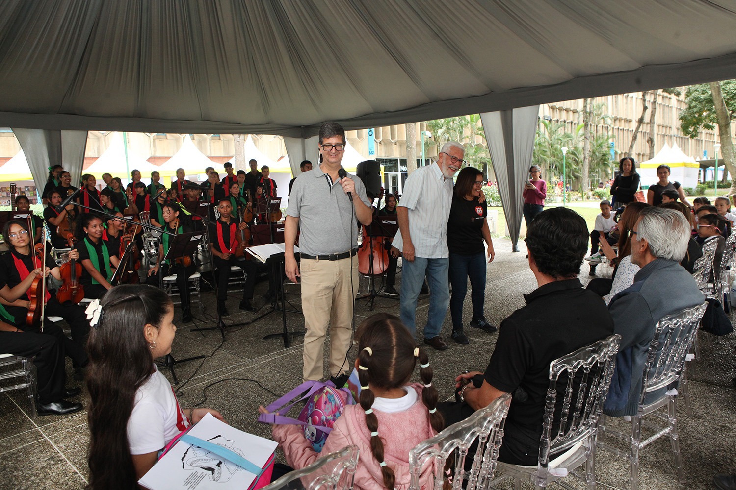 El ambiente se llenó de música gracias a los jóvenes del Coro y Orquesta de la Escuela de Música Samuel y Lola Maldonado, a quienes el rector Arturo Peraza agradeció especialmente por viajar desde Valencia, Carabobo, para interpretar piezas navideñas nacionales e internacionales.