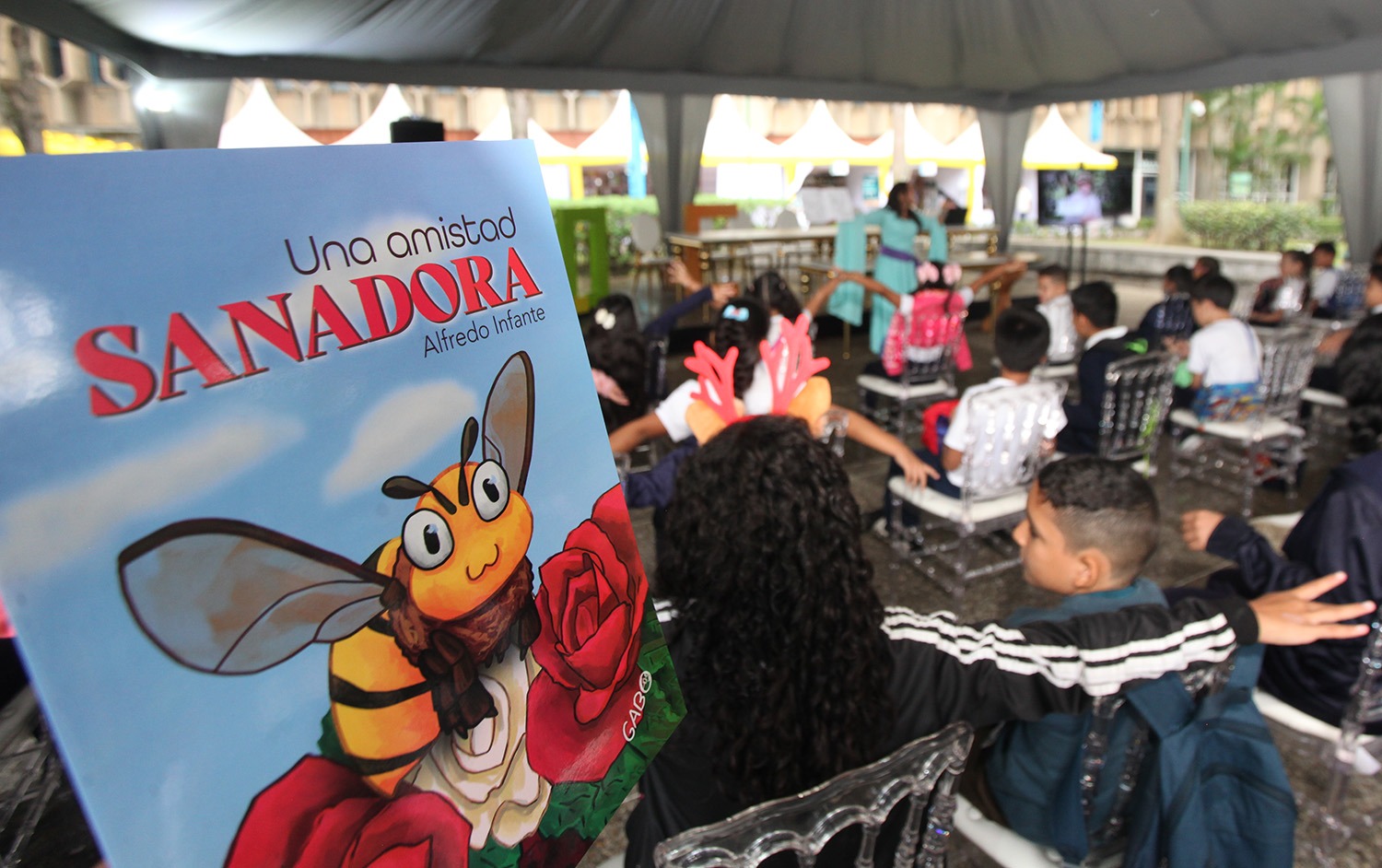 Acompañados de sus padres y maestros, los pequeños disfrutaron de la presentación que Alejandra Santana, directora de Narracuentos UCAB, hizo de Una amistad sanadora, fábula que promueve la convivencia y reconciliación escrita por el provincial en Venezuela de la Compañía de Jesús, padre Alfredo Infante S.J.