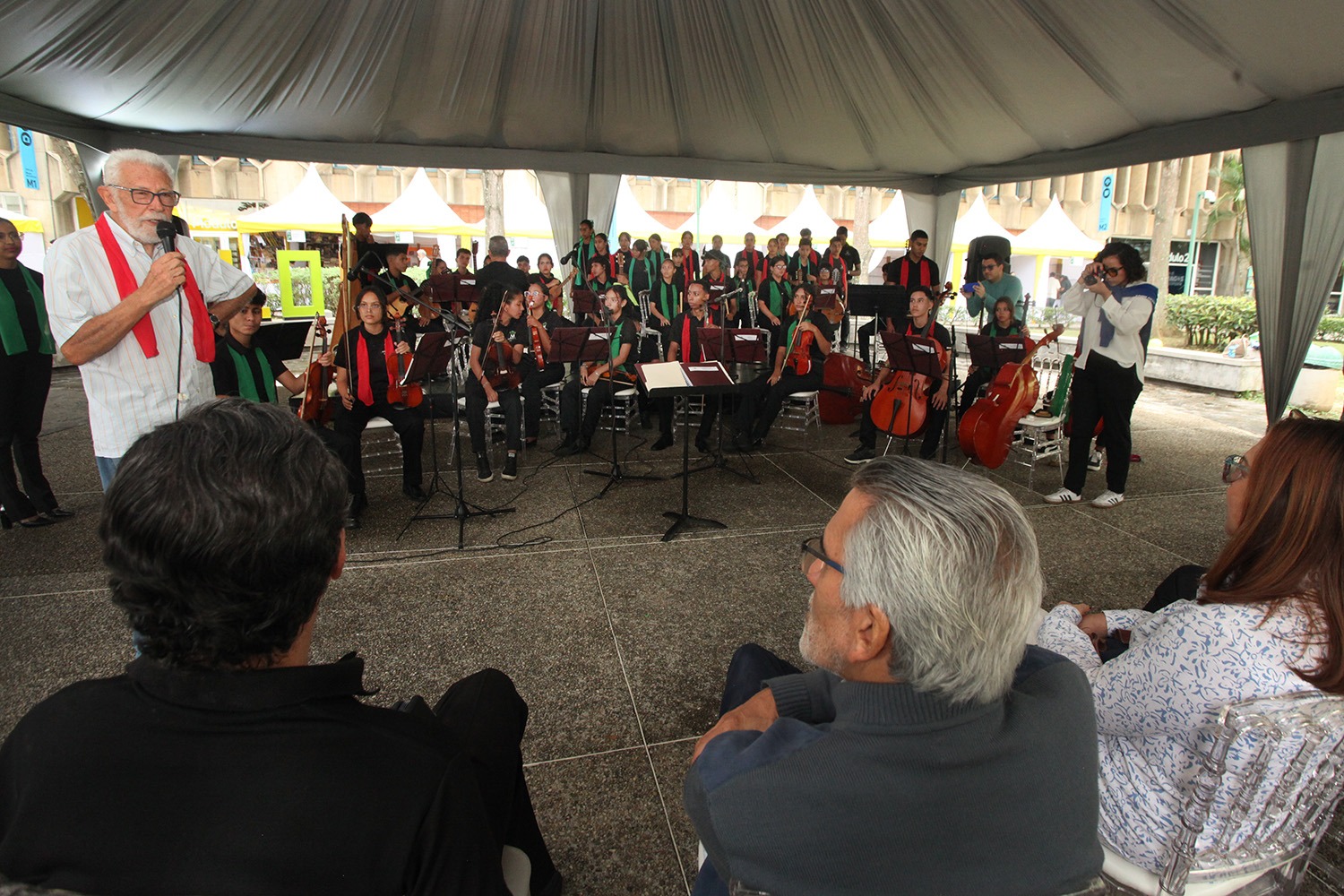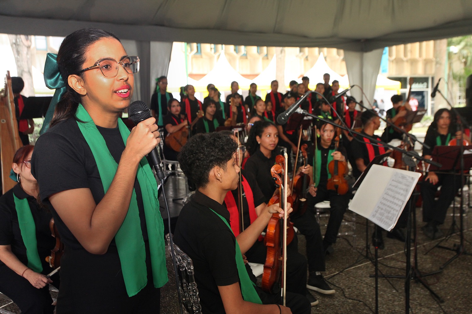 El ambiente se llenó de música gracias a los jóvenes del Coro y Orquesta de la Escuela de Música Samuel y Lola Maldonado, a quienes el rector Arturo Peraza agradeció especialmente por viajar desde Valencia, Carabobo, para interpretar piezas navideñas nacionales e internacionales.