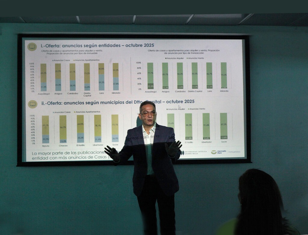 «Esta es una alianza con un partner estratégico como la UCAB, que nos está apoyando con el procesamiento de la data. Lo que buscamos es llenar vacíos de información de mercado con mucha data de Mercado Libre. No pretendemos establecer ningún tipo de marco de precios; estamos hablando de intención de venta», sostuvo Belisse Guerra, gerente comercial del mercado inmobiliario para Venezuela y Colombia en Mercado Libre, quien informó que los reportes se actualizarán cada seis meses.