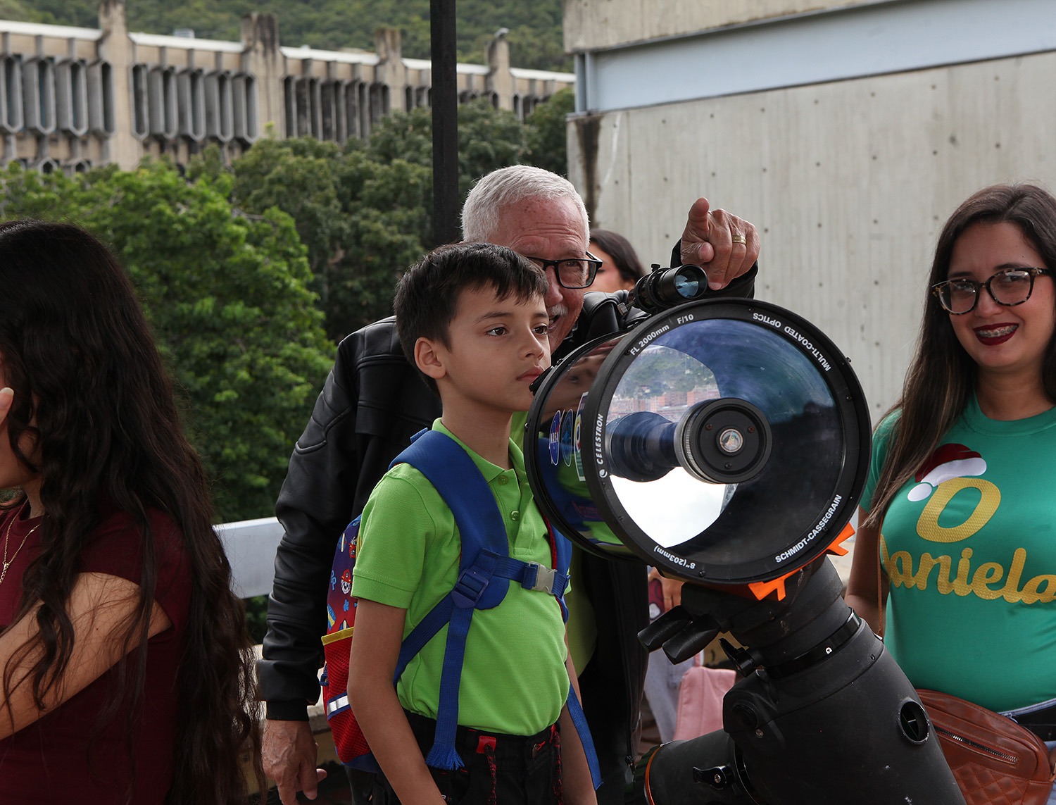 El coordinador académico y de gestión de la Escuela de Educación, Alejandro Del Mar, fue el encargado de preparar los cuatro telescopios —dos de la UCAB, uno del Instituto Venezolano de Meteorología e Hidrología (dotado de filtros solares) y uno privado— que fueron los protagonistas de la observación práctica que tuvo lugar hasta las 7:00 p.m.