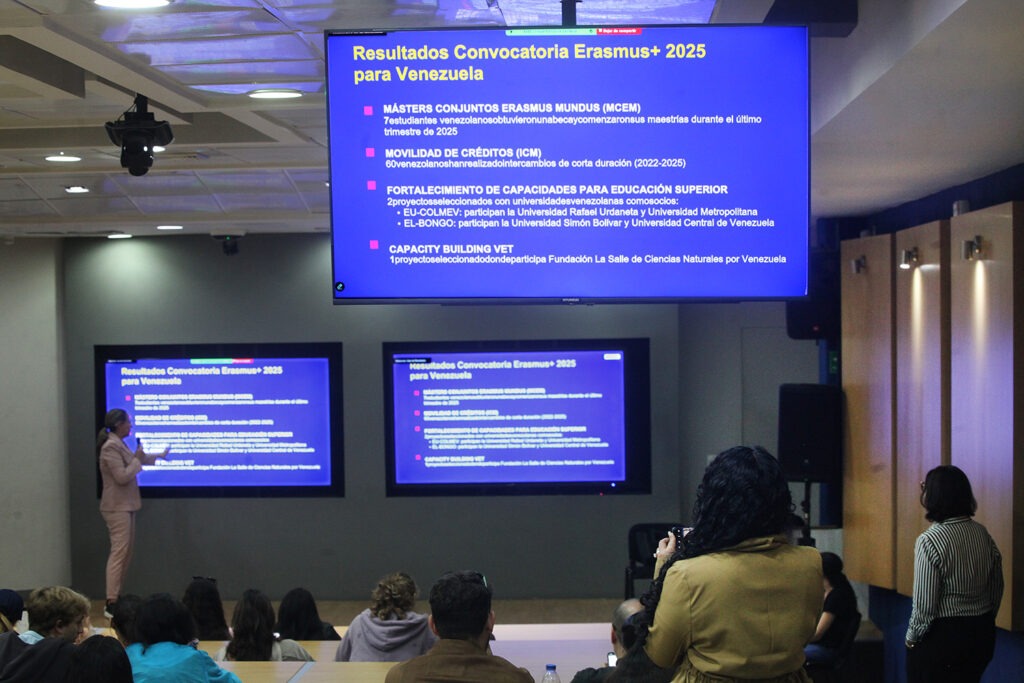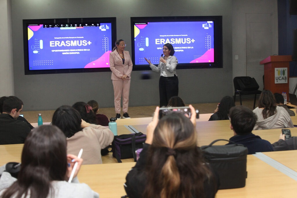 Gracias a la invitación del Secretariado de Internacionalización, el pasado 11 de diciembre Ginette Angulo, oficial de programas de Erasmus, visitó la UCAB para dar a conocer cómo funciona este programa, cuyo proceso de postulaciones está abierto, hasta febrero de 2026, para alumnos, profesores y demás profesionales venezolanos.