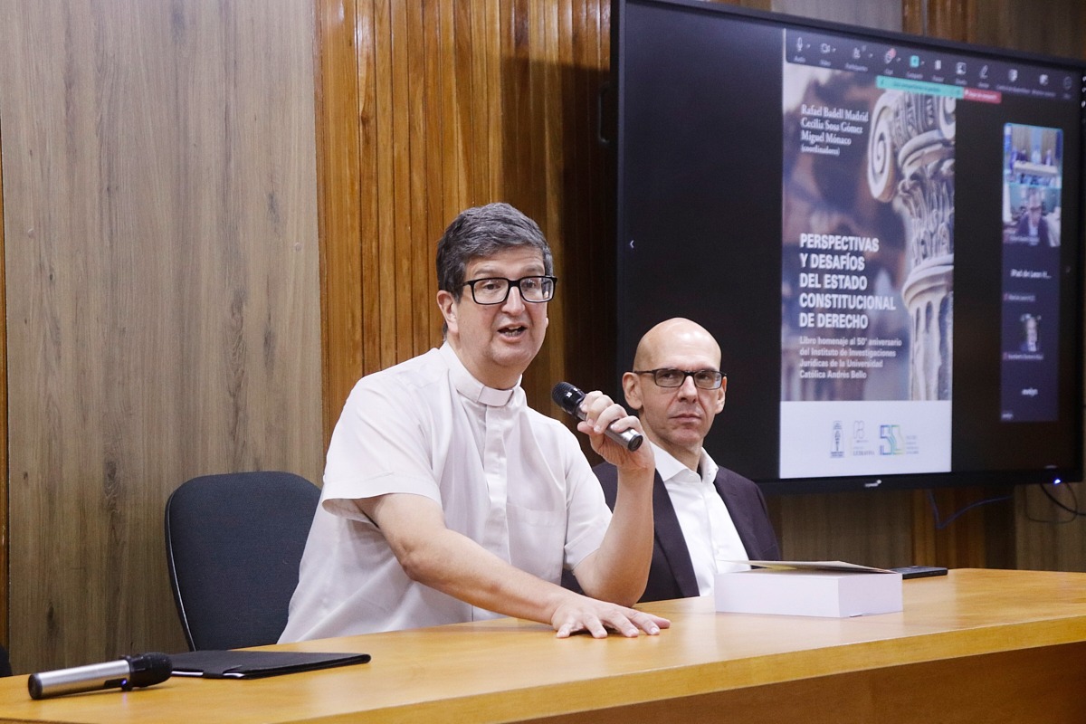 El rector de la UCAB, Arturo Peraza, S. J., consideró que el libro Perspectivas y desafíos del Estado Constitucional de Derecho es, además de un conjunto de trabajos analíticos, un ejercicio que resume el sentido del derecho en un contexto en el que el Estado falla.