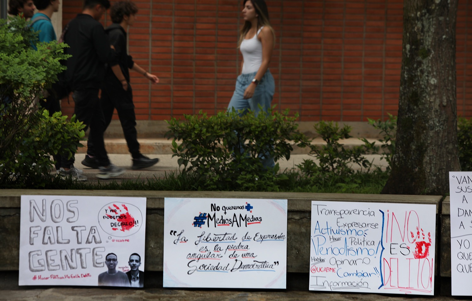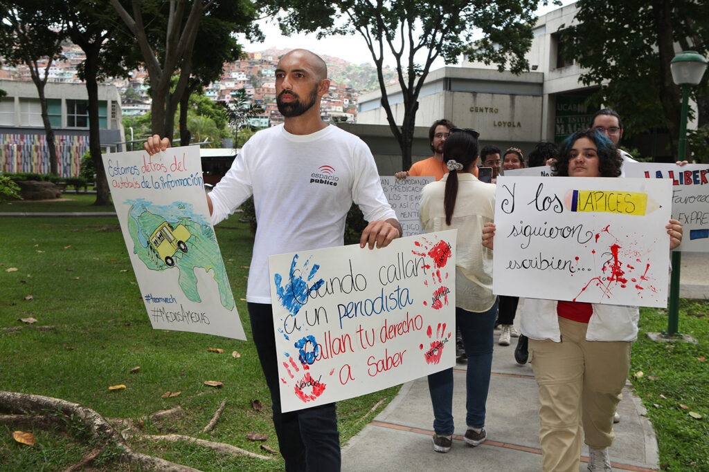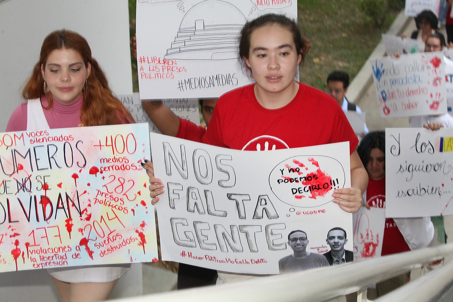 En el marco de la celebración del Día del Periodista, este 27 de junio los centros de estudiantes de Comunicación Social, Derecho e Ingeniería, junto con el Centro de Derechos Humanos (CDH), y la ONG Espacio Público, convocaron un «Pancartazo» para denunciar el cierre y censura de medios de comunicación en el país.