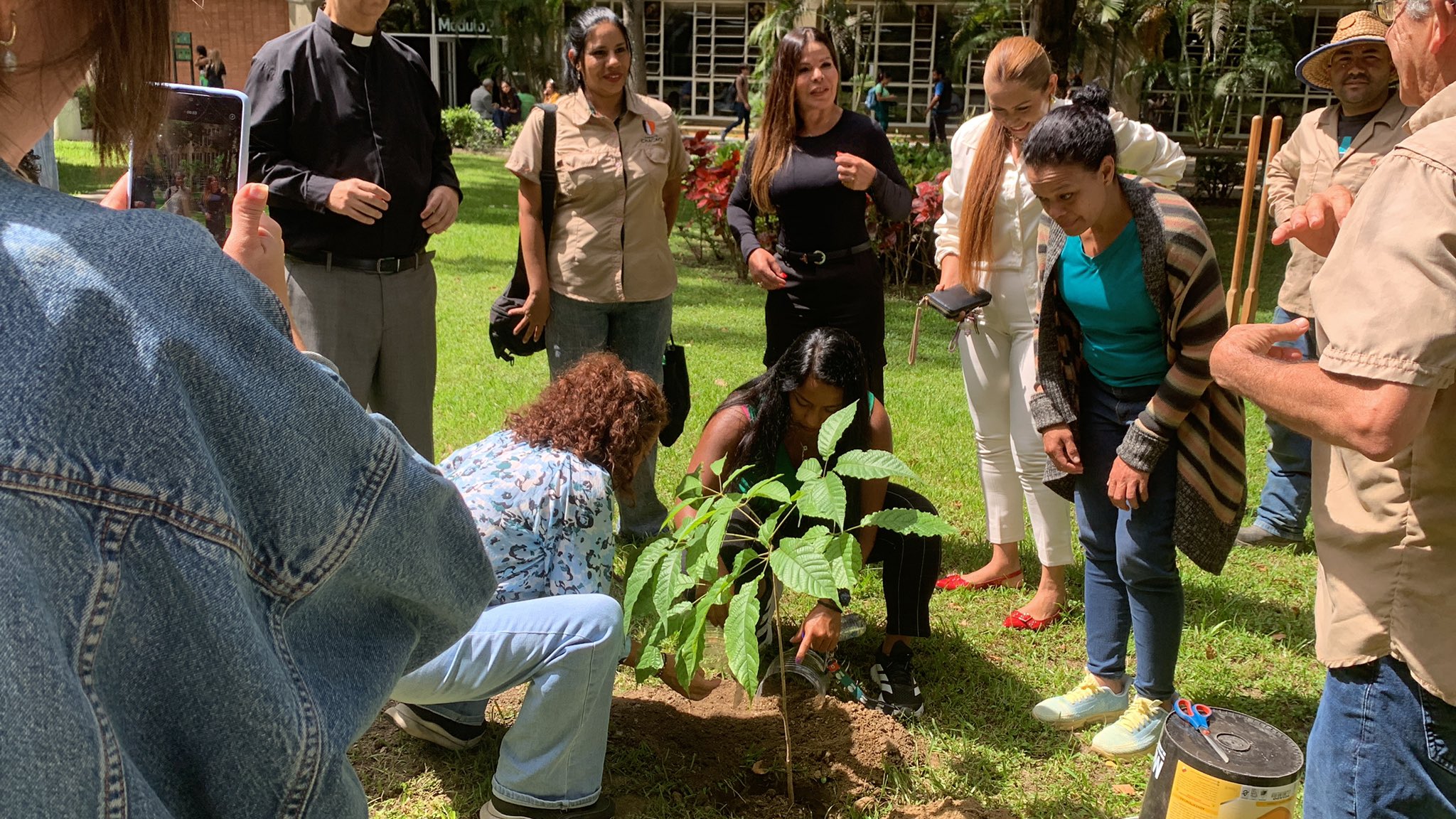 En el Día Mundial del Ambiente, un araguaney, un pilón y un bucare se sumaron a la rica vegetación de los jardines centrales del campus Montalbán. La plantación de estas especies forma parte de las acciones permanentes para que las áreas verdes ucabistas absorban dos tercios del CO2 emitido por la institución y ayuden a llevarlo a cero antes de 2040