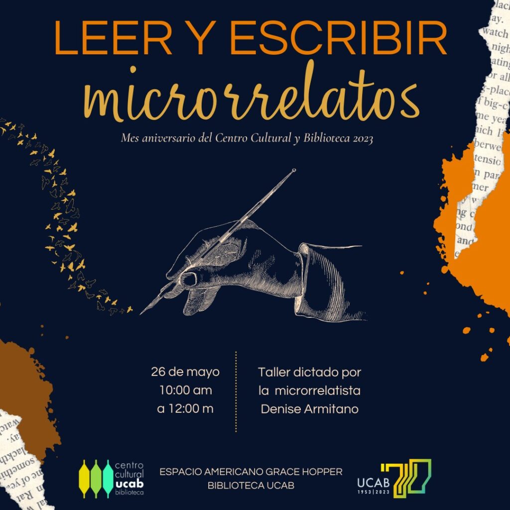 El encuentro se desarrollará en el Espacio Americano Grace Hopper de la Biblioteca UCAB, el viernes 26 de mayo, de 10:00 a.m. a 12:00 pm, y será dictado por la microrrelatista Denise Armitano.
