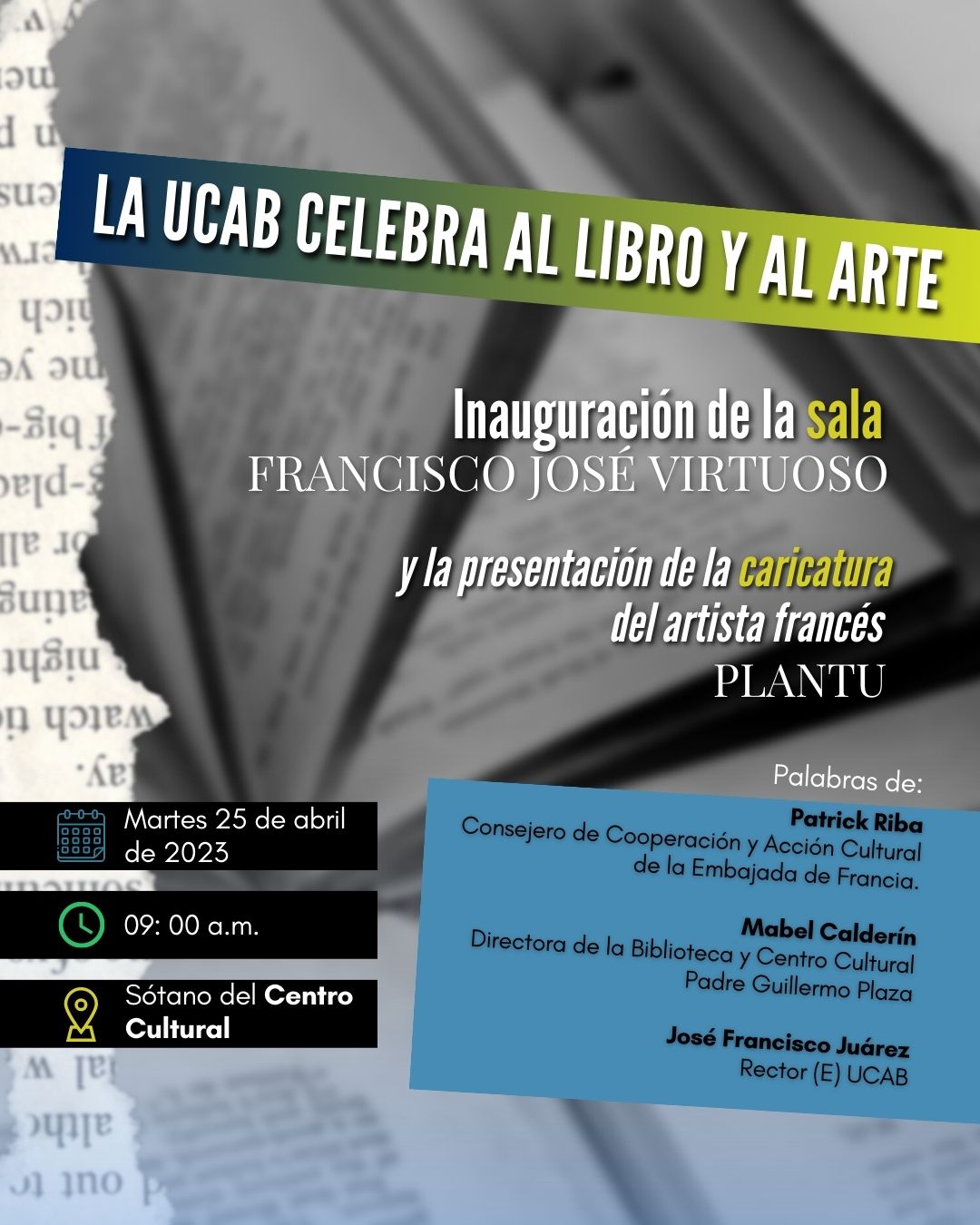 El martes 25 de abril, en el marco de la celebración del Día del Libro, la casa editorial abediciones prepara las siguentes actividades: la inauguración de la sala Francisco José Virtuoso, en honor al ex rector de la UCAB, y la presentación de una caricatura del sacerdote jesuita y politólogo realizada por el artista francés Plantú.
