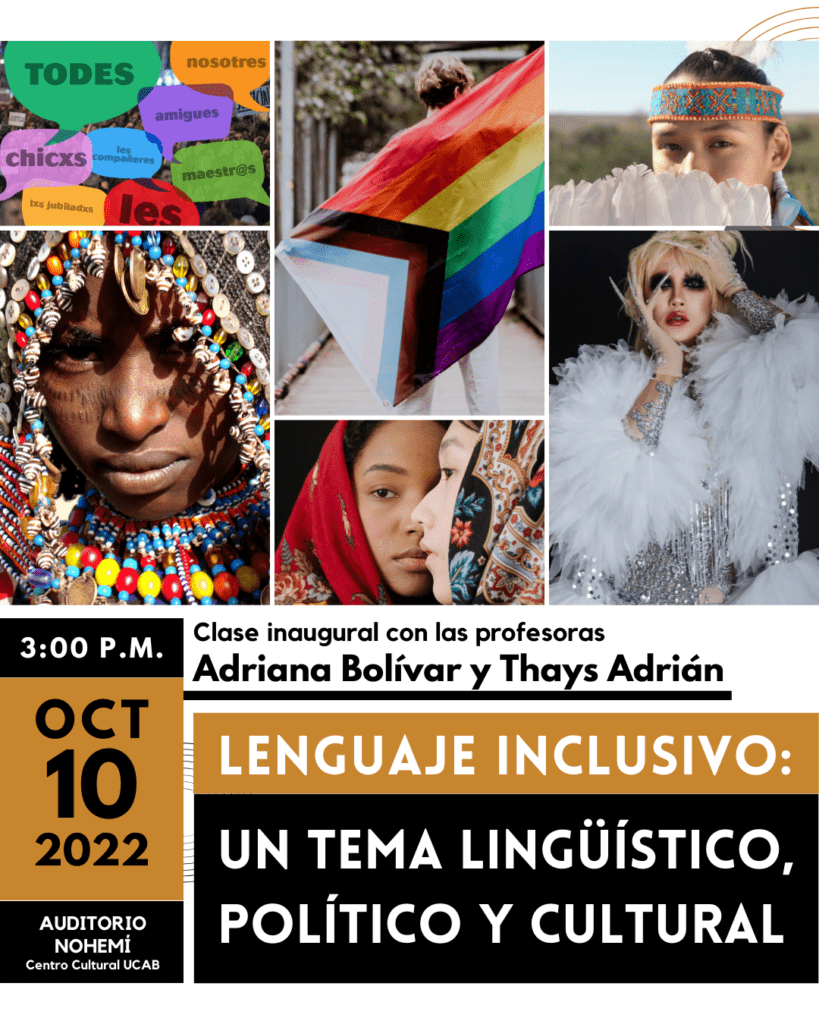 La Escuela de Letras de la UCAB invita a su clase especial por el inicio del período académico 2022-2023. La lección inaugural está titulada «Lenguaje inclusivo, un tema lingüístico, político y cultural» y será dictada por las profesoras Thays Adrián (UCAB) y Adriana Bolívar (UCV), especialistas en Estudios del Discurso.