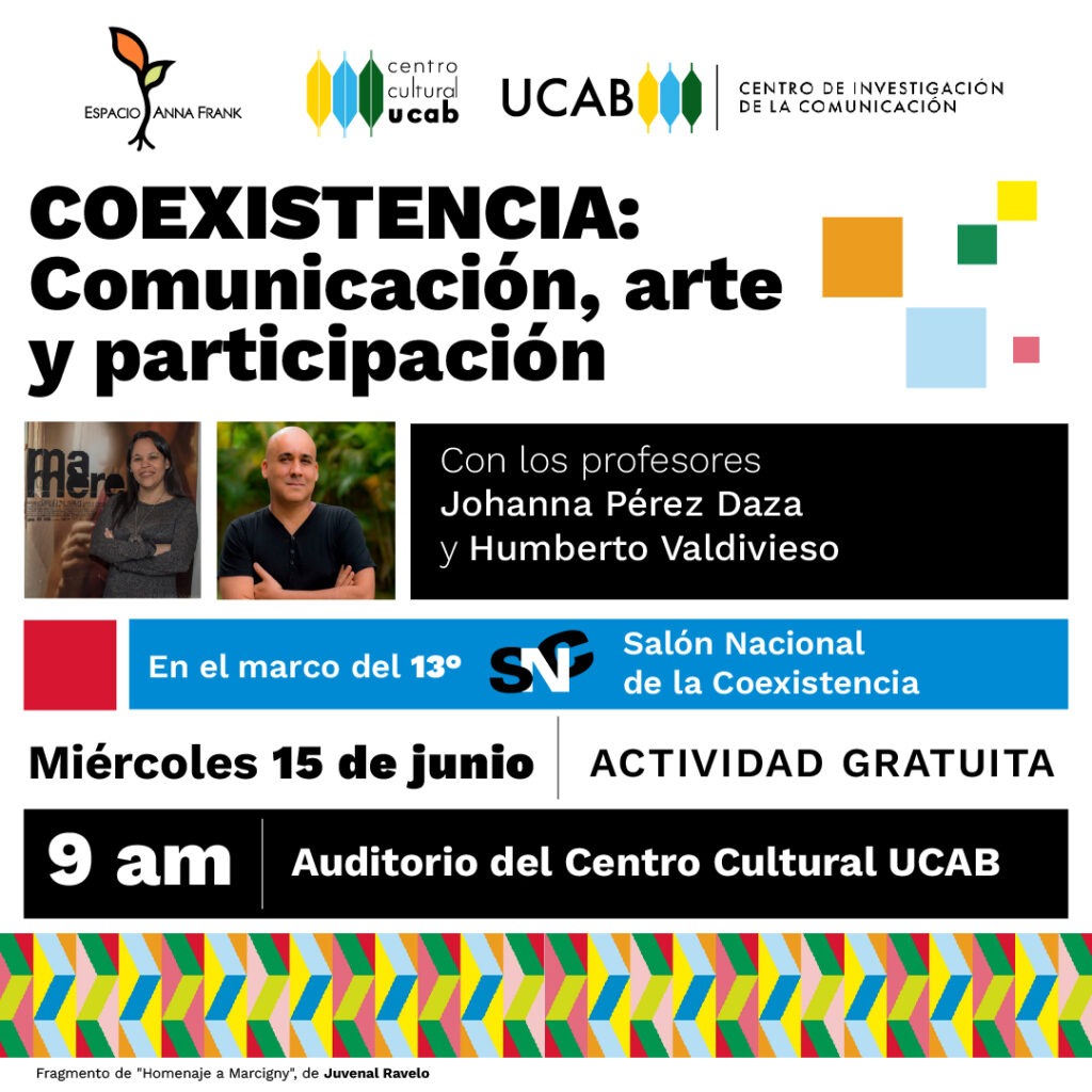 El Centro de Investigación de la Comunciación (CIC) y el Centro Cultural P. Carlos Guillermo Plaza SJ de la UCAB, con apoyo del Espacio Anna Frank, han organizado un encuentro presencial para disertar sobre comunicación, arte y participación.