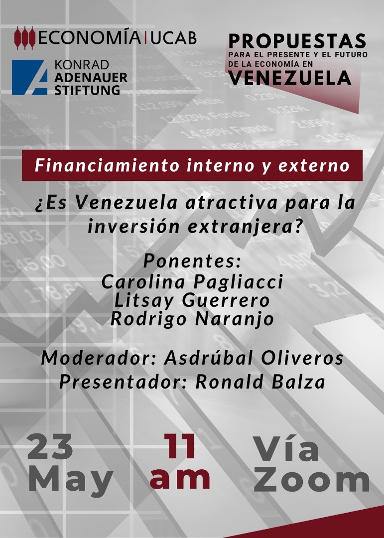 En el marco del proyecto “Propuestas para el presente y el futuro de la economía en Venezuela”, la Escuela de Economía de la UCAB llevará a cabo una videoconferencia en la que un grupo de expertos debatirá sobre el componente atractivo que tiene Venezuela para la inversión extranjera.