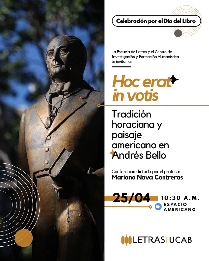 A propósito de la celebración del Día Mundial del Libro y el Día Mundial del Idioma, la Escuela de Letras y el Centro de Investigación y Formación Humanística (CIFH) de la UCAB realizará un encuentro en el que se disertará sobre el “Hoc erat in votis”. Tradición horaciana y paisaje americano en Andrés Bello.