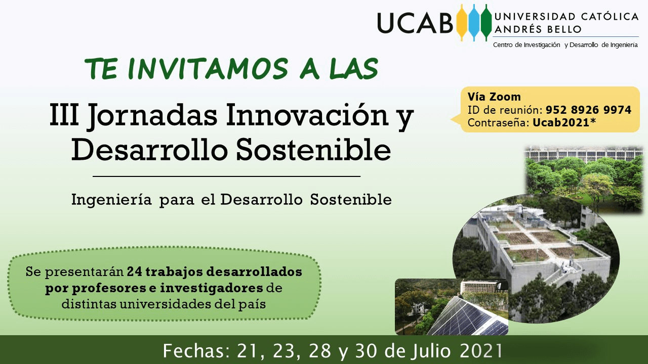 Las III Jornadas de Innovación y Desarrollo Sostenible: Ingeniería para el Desarrollo Sostenible, se llevarán a cabo, vía Zoom, en cuatro sesiones durante el mes de julio: