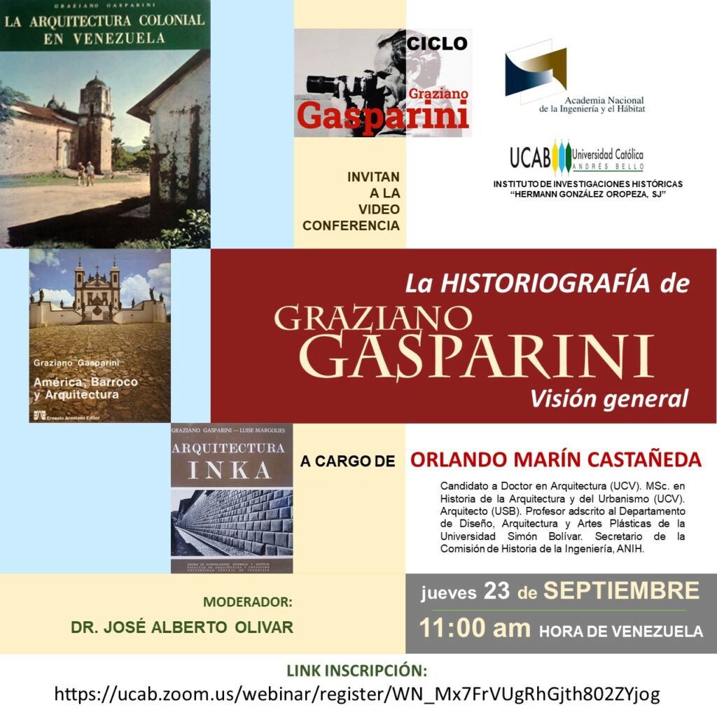 El Instituto de Investigaciones Históricas (IIH) de la UCAB y la Academia Nacional de la Ingeniería y el Hábitat, realizarán esa actividad en la que se compartirá la visión general del arquitecto Graziano Gasparini, sobre la historiografía.
