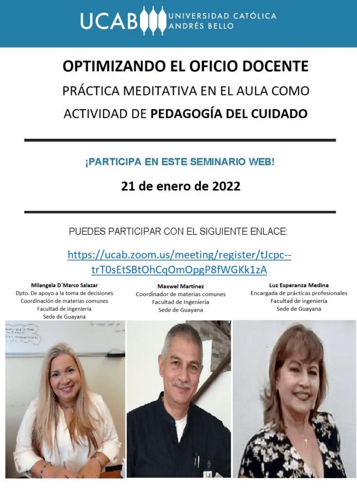 Link de registro: https://ucab.zoom.us/meeting/register/tJcpc–trT0sEtSBtOhCqOmOpgP8fWGKk1zA